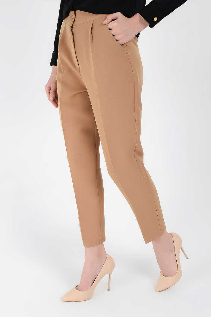 Fermuarlı Cep Detaylı Kalem Pantolon 0201 Taba