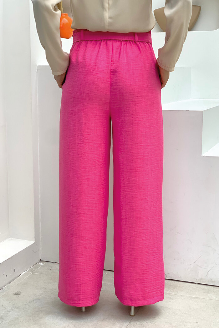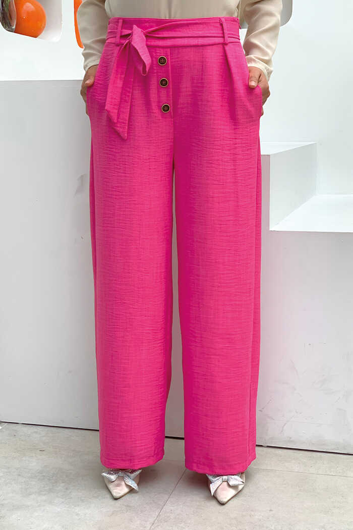 Düğme Detaylı Bel Bağlamalı Cepli Bol Pantolon 0275 Fuşya