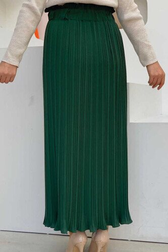 Pleated Plain Skirt Waist Thick Elastic Pleated Model Unlined Comfortable Pattern Can Be Preferred All Seasons. Crepe Fabric 36 38 40 42 44 Size Compatible Product Dimensions Waist 68Cm Hips 56Cm Length 99Cm. There is 2 cm of play between our other sizes. The size on our mannequins is 36. They are on average 165-170 cm in height and in the range of 55-60 kg.