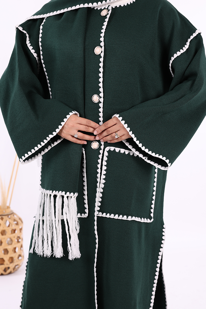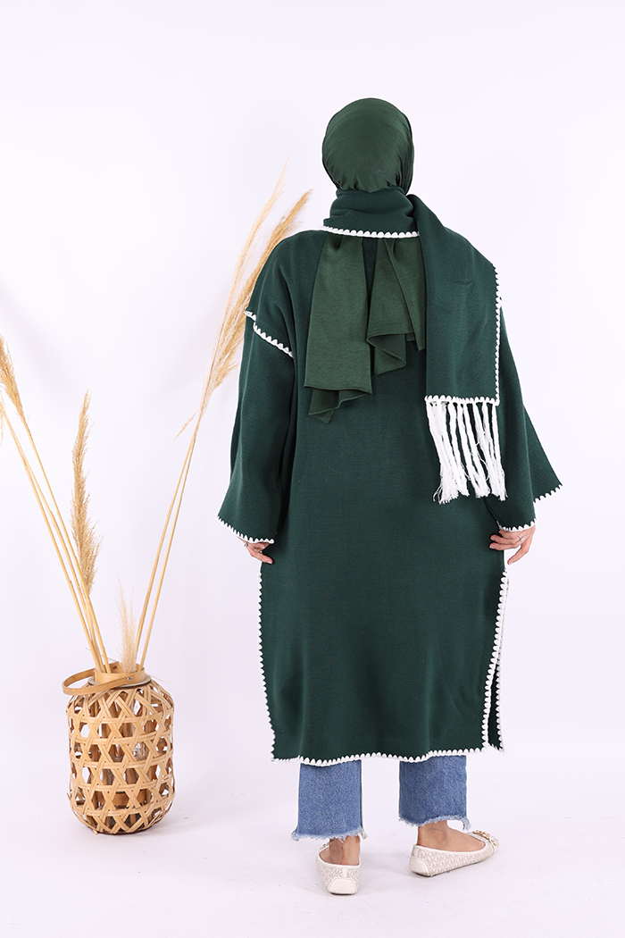 Triko Atkılı Hırka 12156 Zümrüt