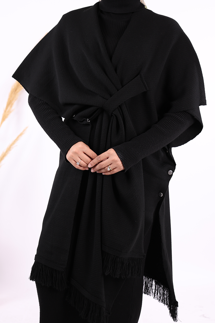 Şal Bağlamalı Triko Panço 12630 Siyah