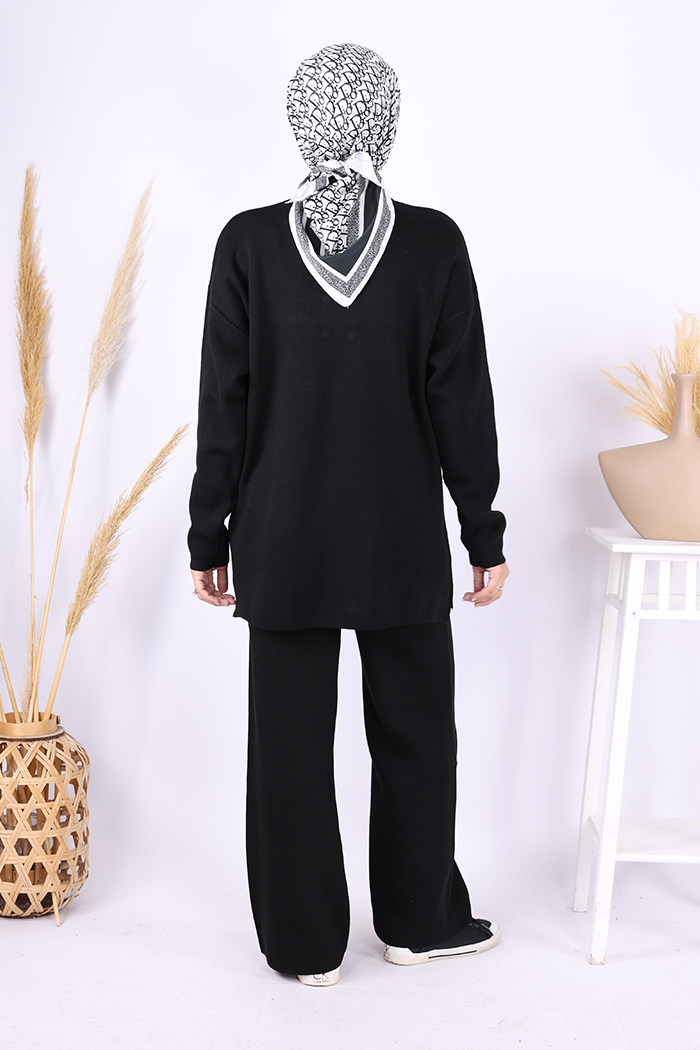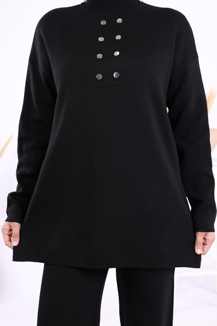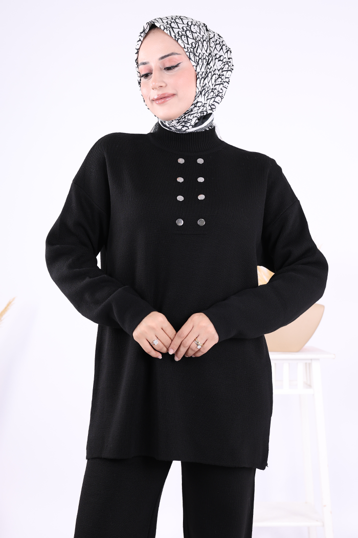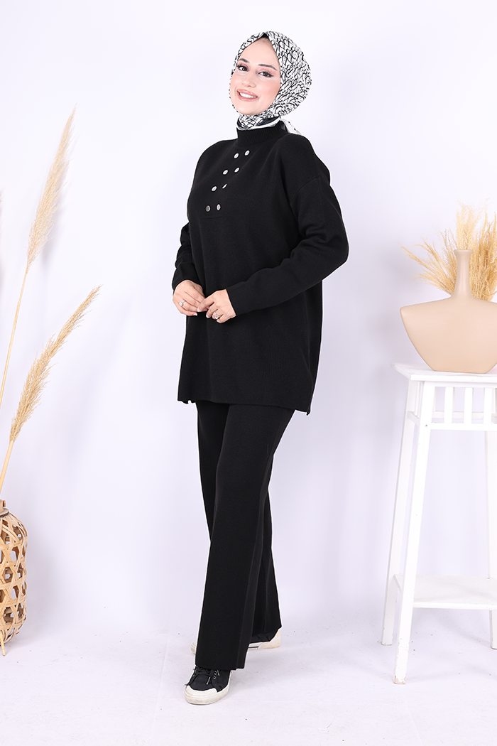 Yarım Balıkçı Önü Düğme Detaylı Takım 1630 Siyah