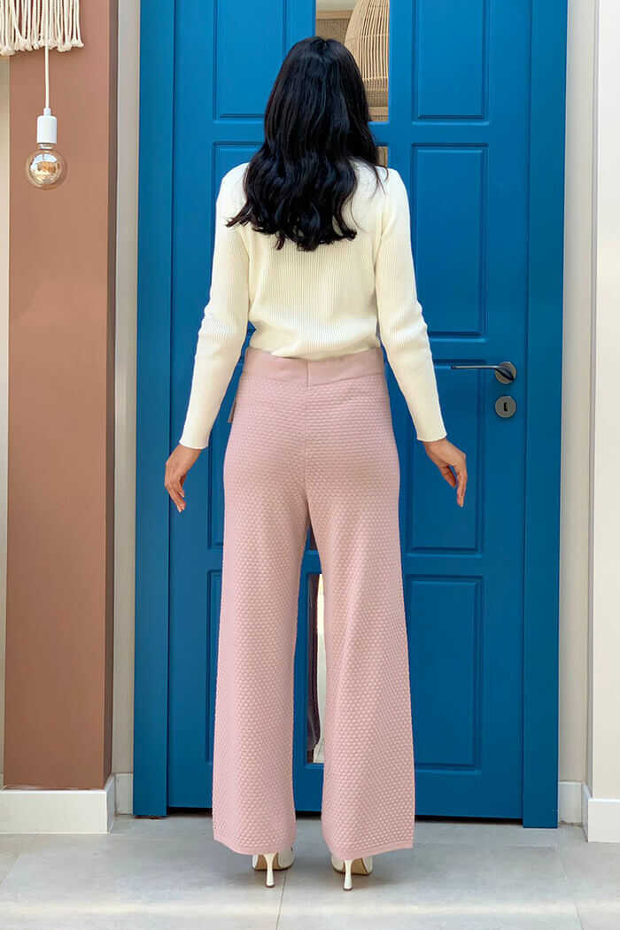 Beli Lastikli Kendinden Desenli Triko Pantolon 22214 Pudra
