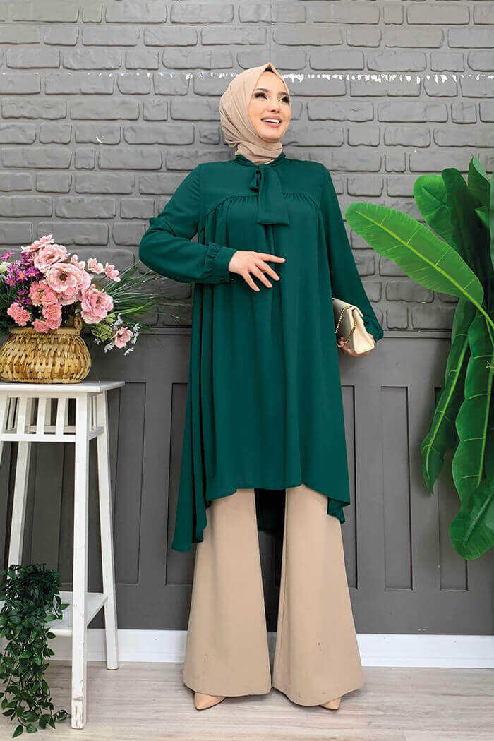 Шифоновая туника с манжетами на рукавах и воротником 2454 Изумруд