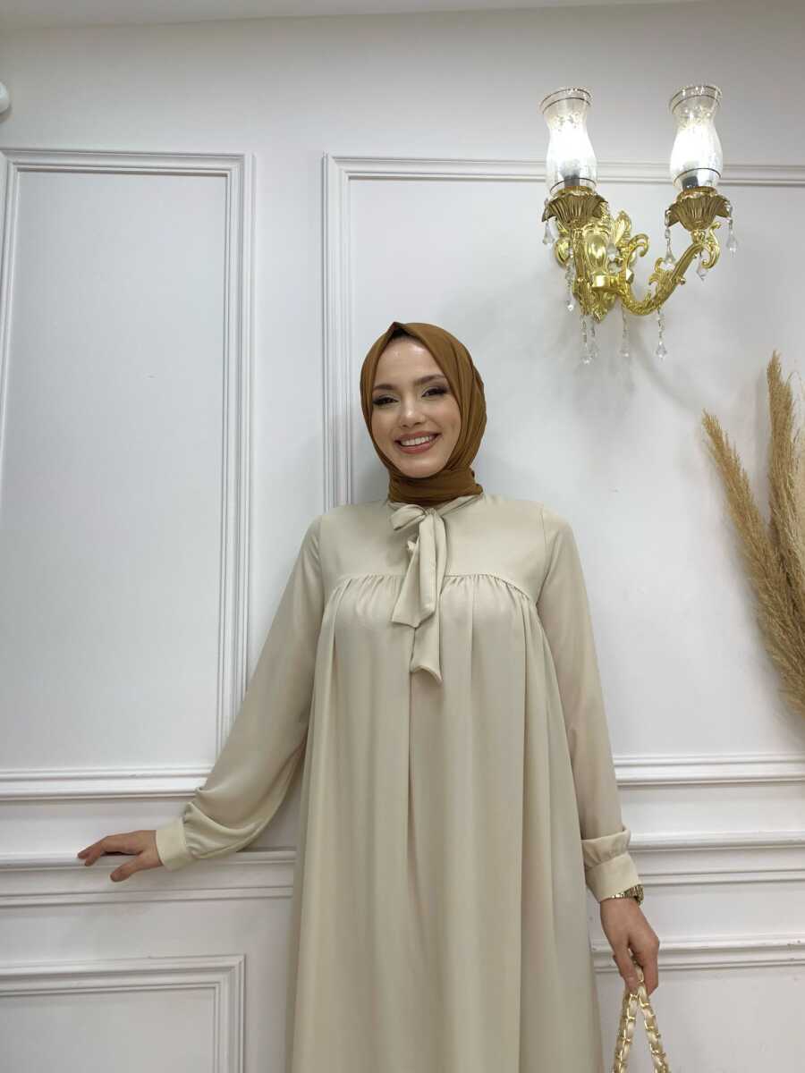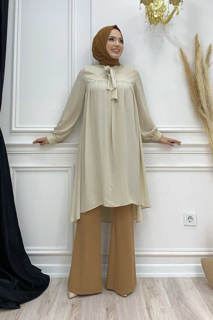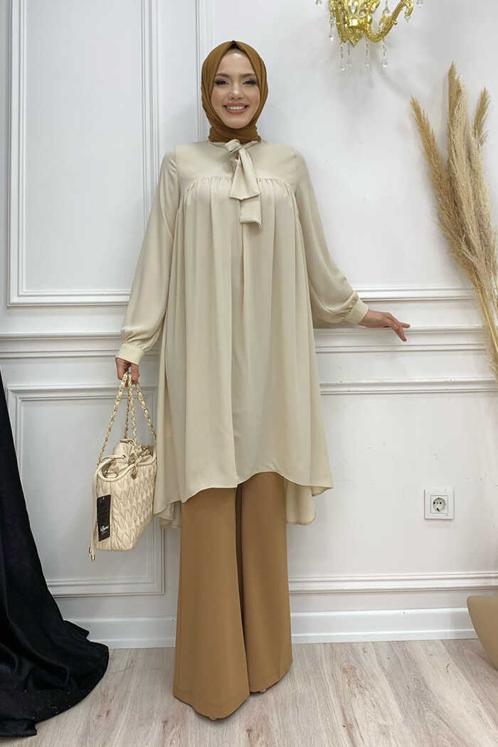 Collar Detail Tailed Sleeve Cuff Chiffon Tunic 2454 Stone