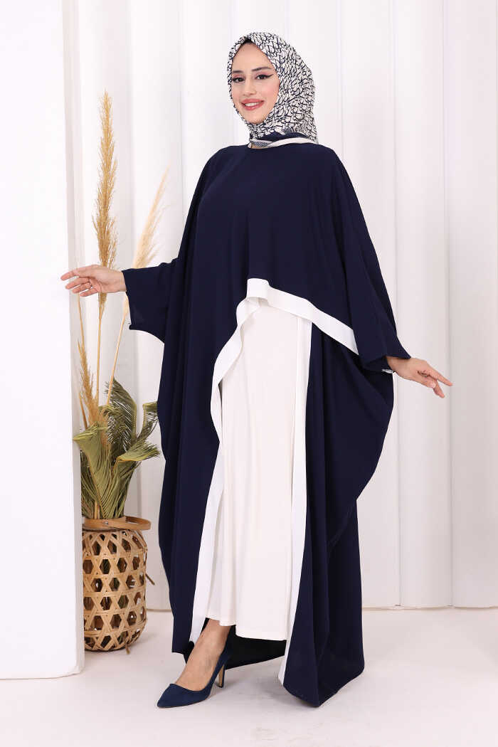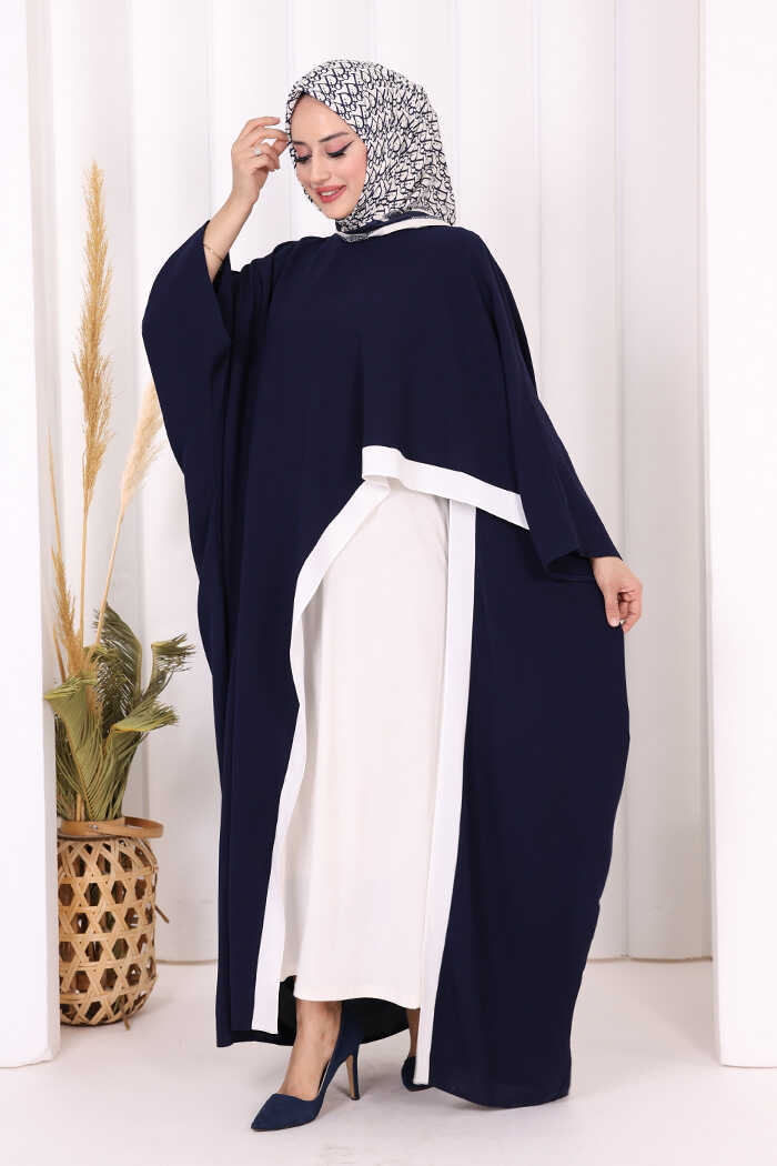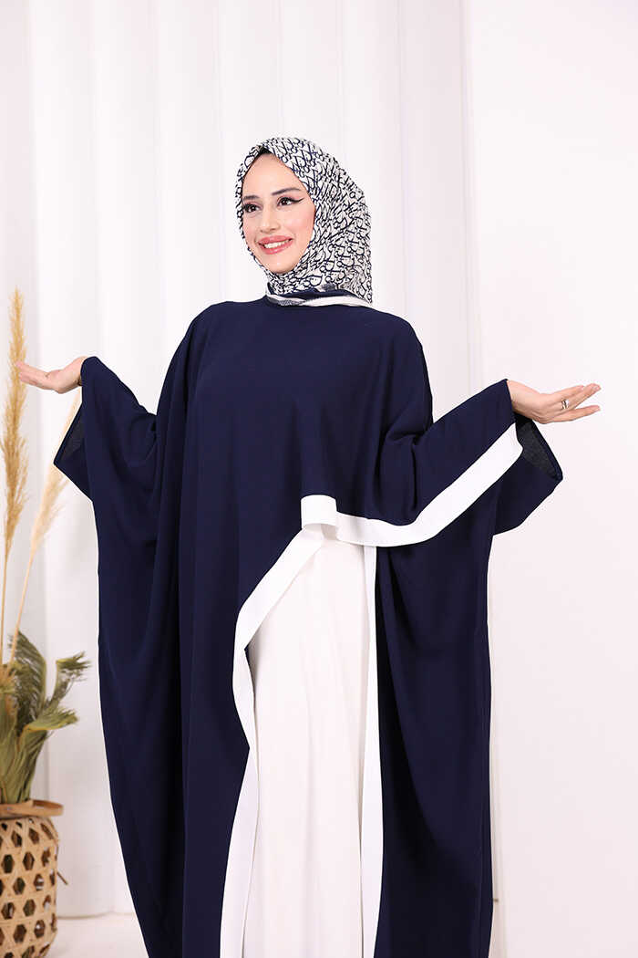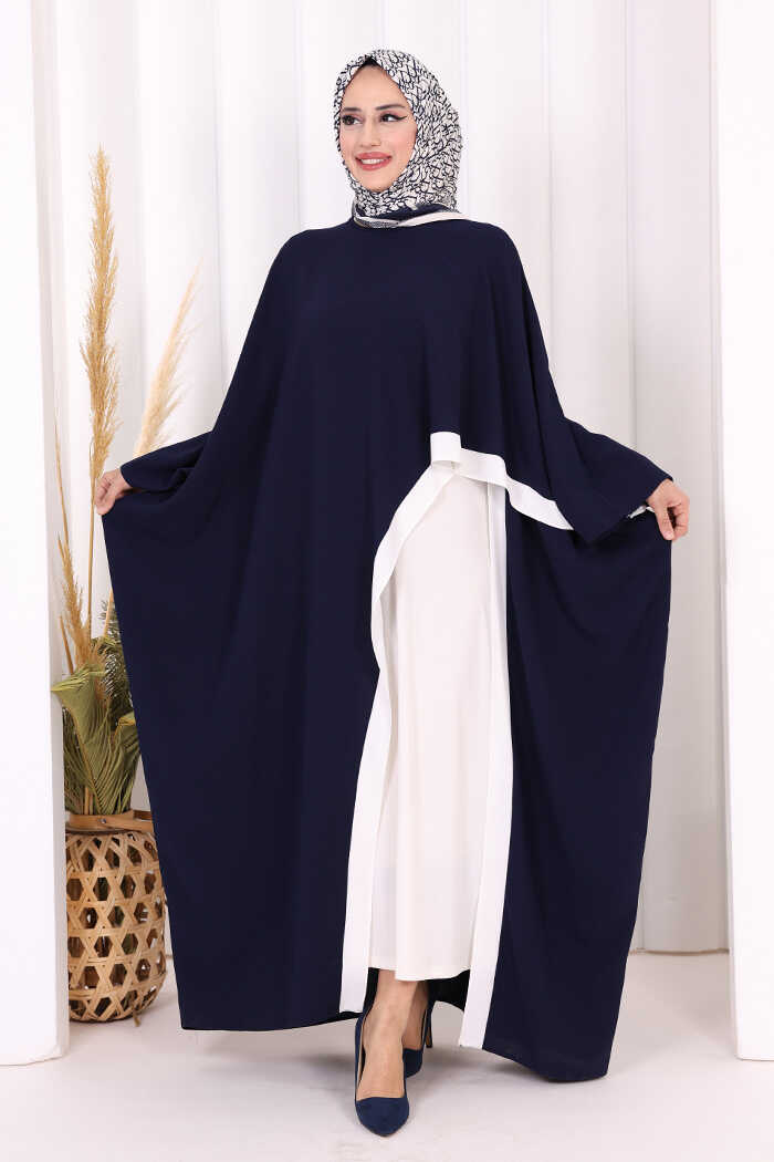 Şeritli Yandan Yırtmaç Detay Uzun Tunik 2742 Lacivert