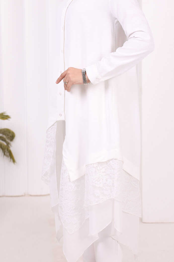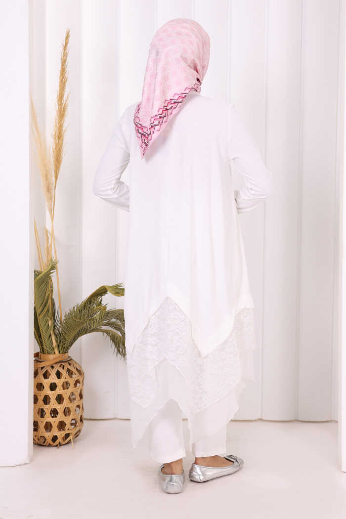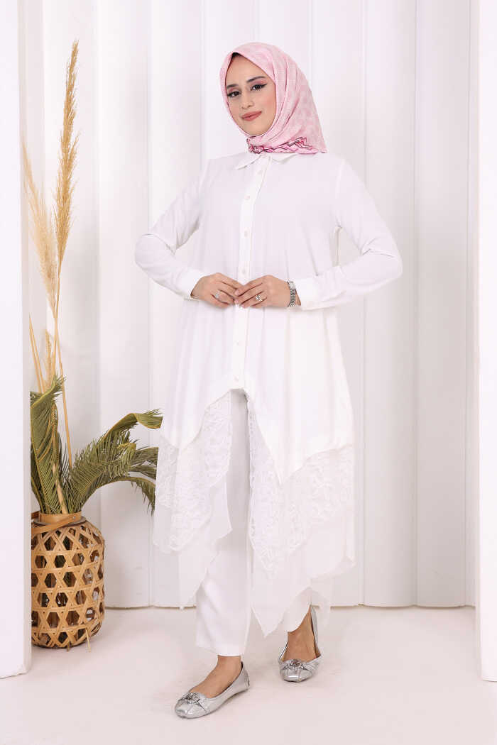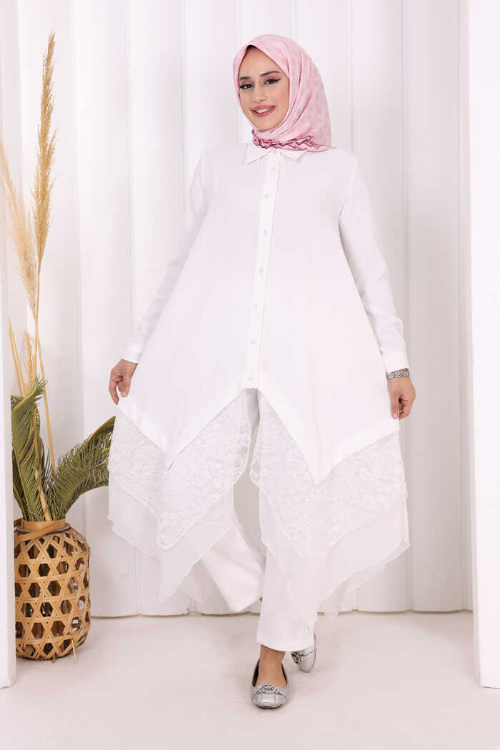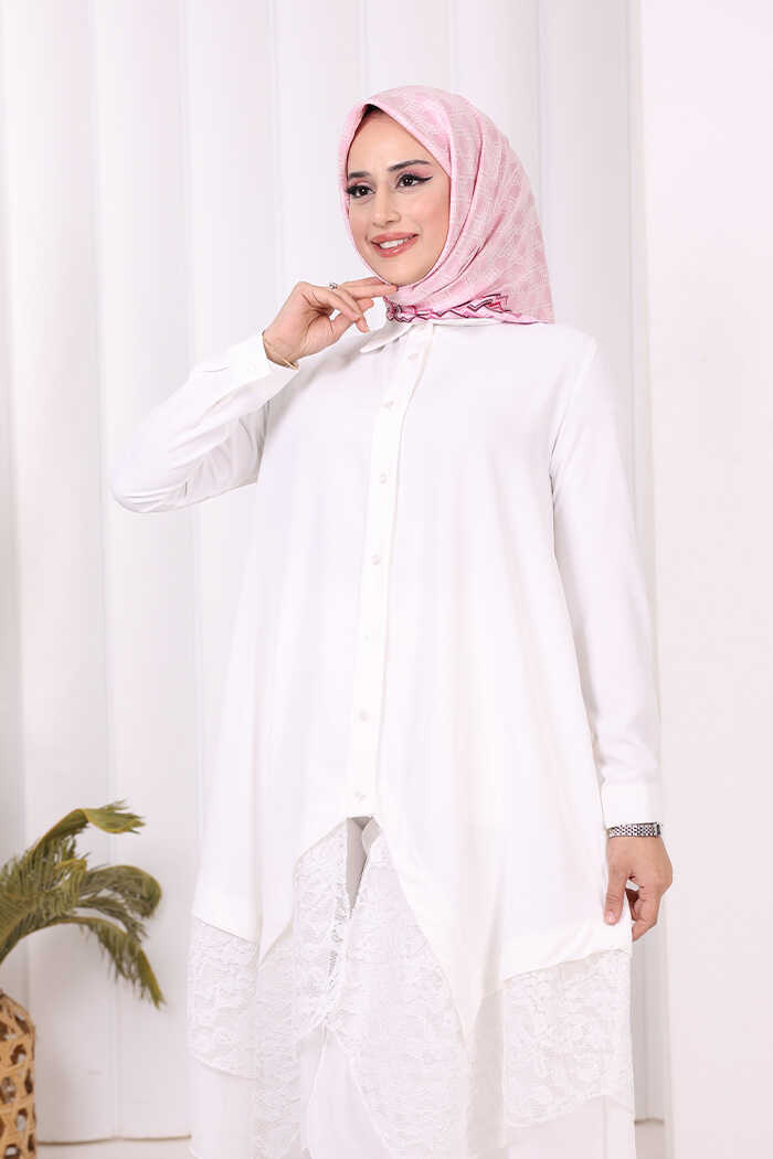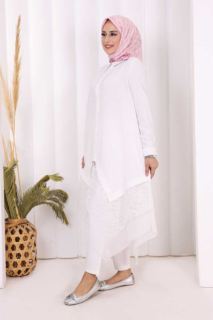 Dantel Ve Şifon Detaylı Asimetrik Kesim Tunik 2758 Ekru