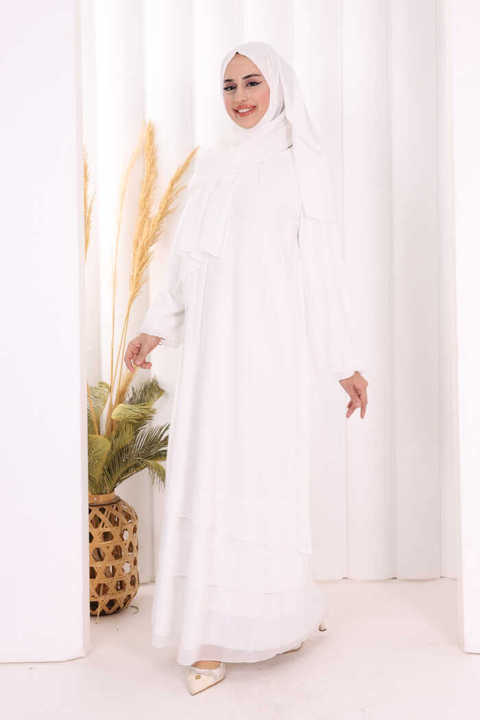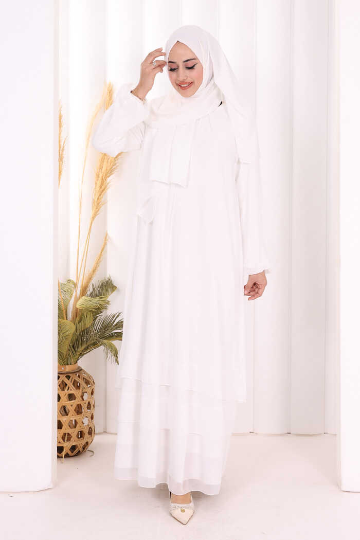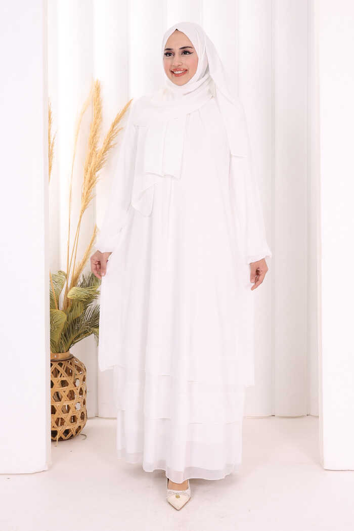 Kat Kat Görünüm Kol Manşetleri Lastikli Şifon Elbise 3060 Ekru