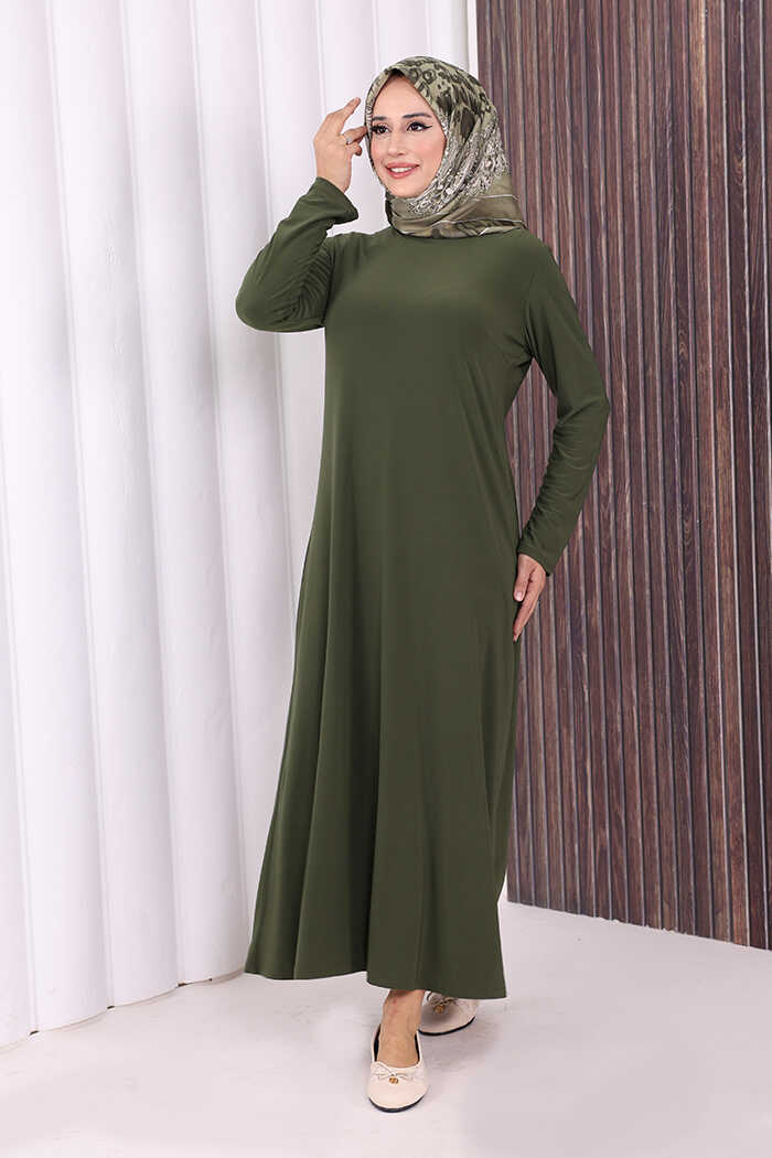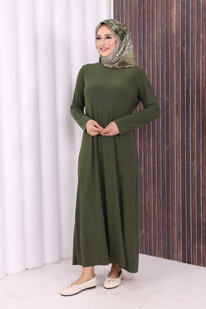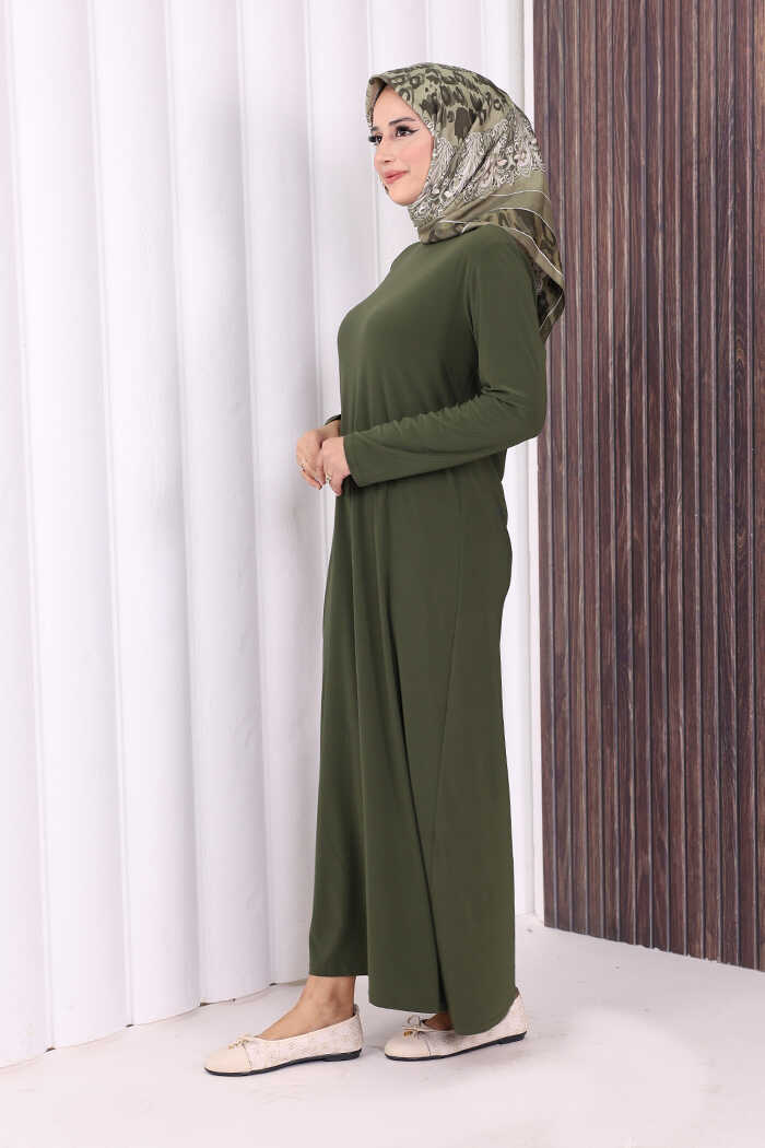 Sandy Dress is Zero Collar, Straight Cut, You Can Use It As Underwear. It is without a belt, it is unlined, it is a comfortable fit, it can be preferred in all seasons. The fabric is standard and it is Size 36 38 40 42 Compatible. Product Dimensions: Shoulder 37 cm Arm Length 58 cm Biceps 16 cm Width 49 cm Length 134 cm. Our mannequins are 165-170 cm in length and 55-60 kg in weight.