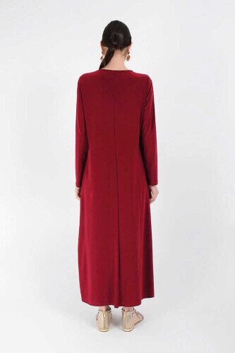 Düz Bisklet Yaka Uzun Kol İç Sandy Elbise 3202 Kırmızı