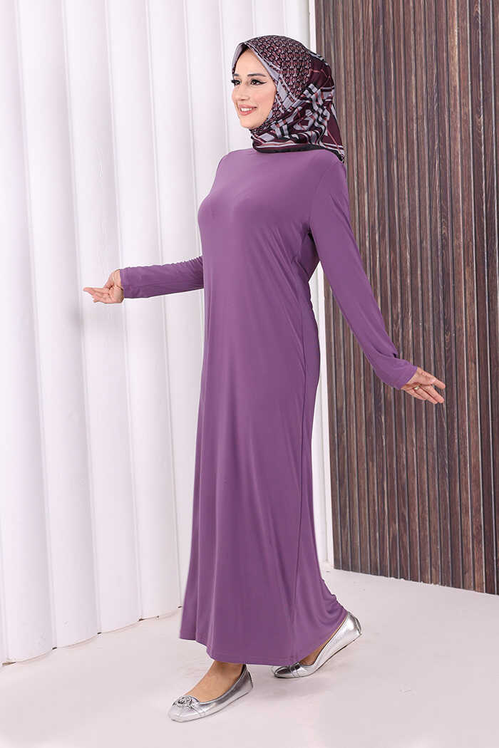 Düz Bisklet Yaka Uzun Kol İç Sandy Elbise 3202 Lila