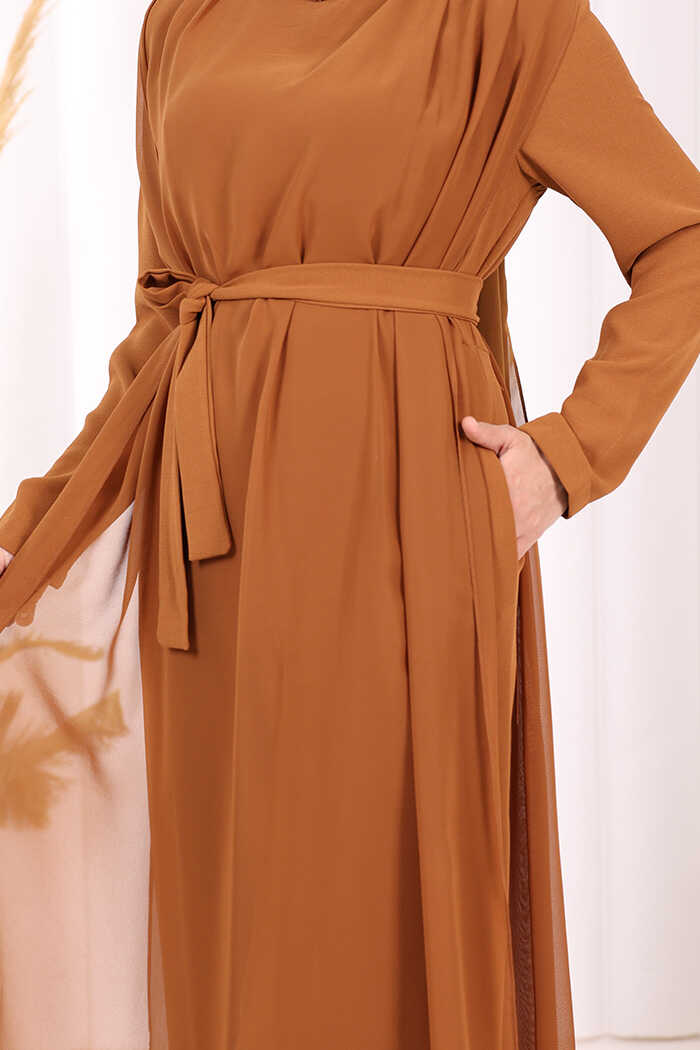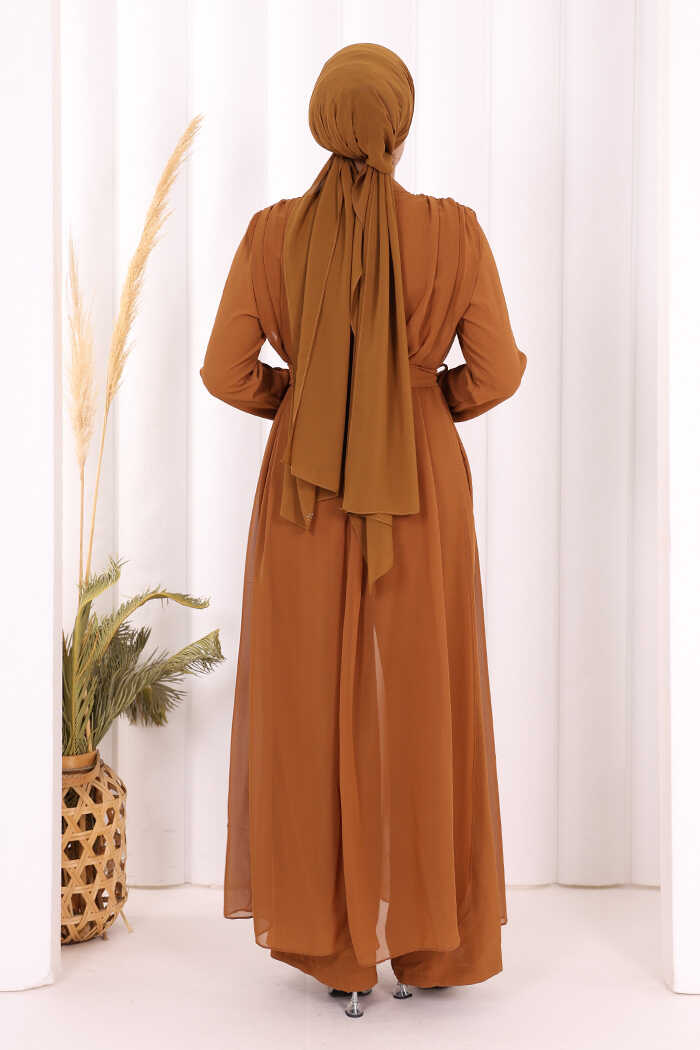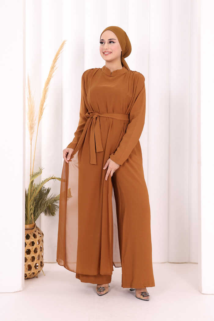Şifon Pelerin Detay Bel Kuşaklı Tulum 3330 Taba