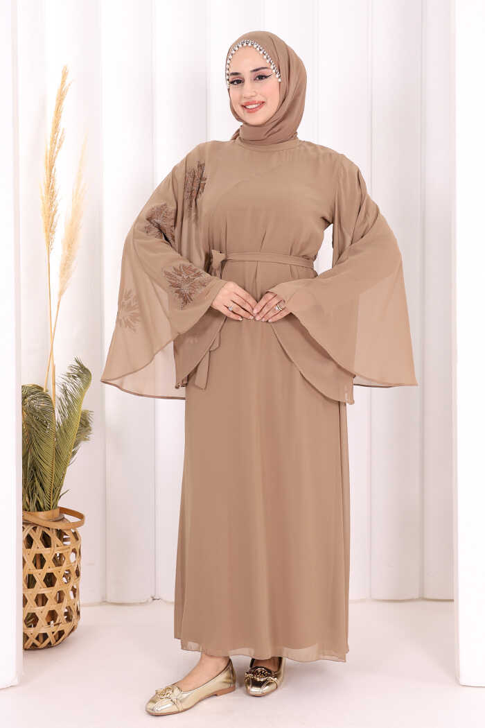 فستان كيب فستان. يجمع رأسها مع فستانها من الكتف. يوجد حزام في الخصر. معالجة بمقبض واحد بالتفصيل. قماش شيفون. نطاق الحجم 38/46. أبعاد المنتج: الكتف 37 سم الذراع 61 سم العضلة ذات الرأسين 30 سم العرض 84 سم الارتفاع 137 سم هناك 2 سم من اللعب بين أحجامنا الأخرى. حجم العارضات لدينا هو 38 ، وطولها 165-170 سم في المتوسط ، وهي في حدود 55-60 كجم.