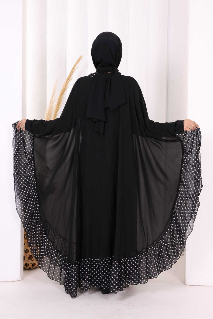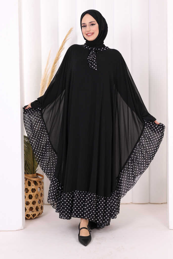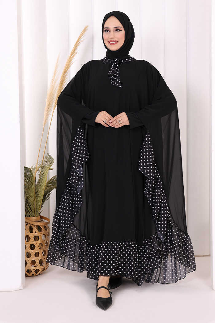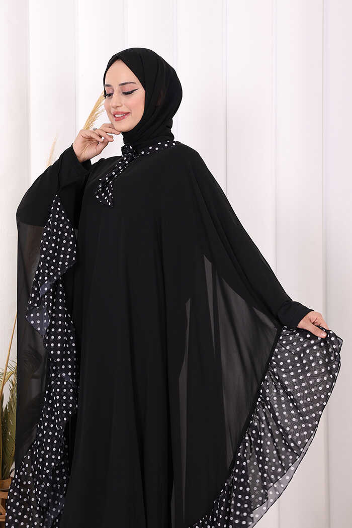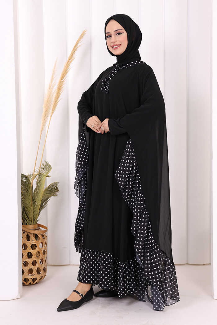 Benekli Yaka Detay Şifon Pelerinli Elbise Takım 3643 Siyah