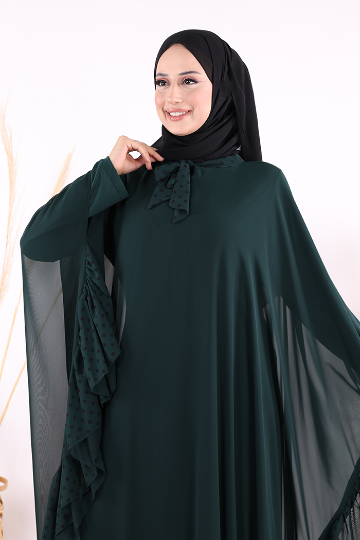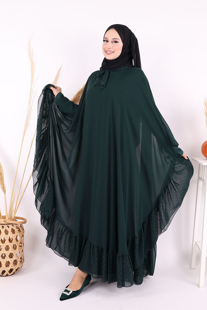 BENEKLİ ŞİFON PELERİNLİ ELBİSE TAKIM: