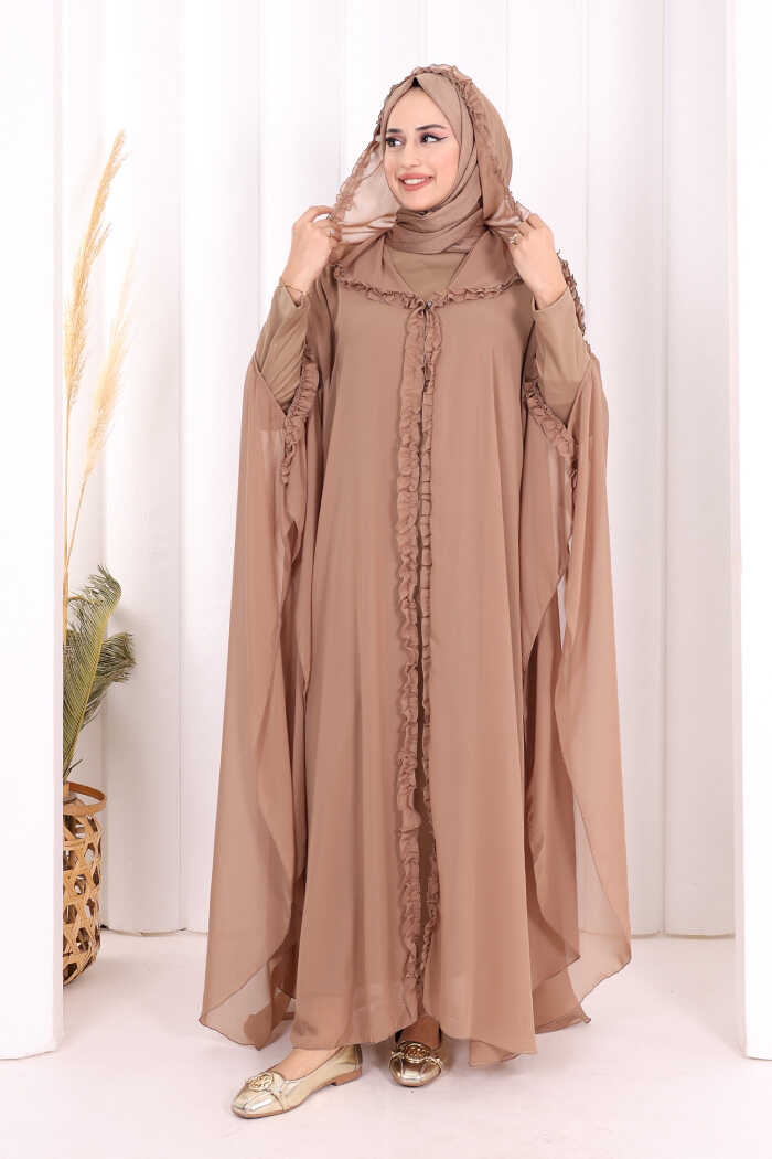 Abayanın Belirli Kısımları Fırfır Detaylıdır.