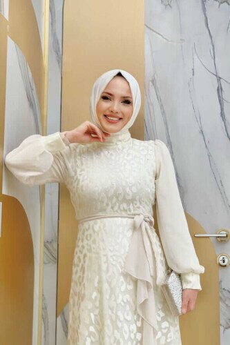 DANTEL GÖRÜNÜMLÜ FIRFIRLI ŞİFON ELBİSE