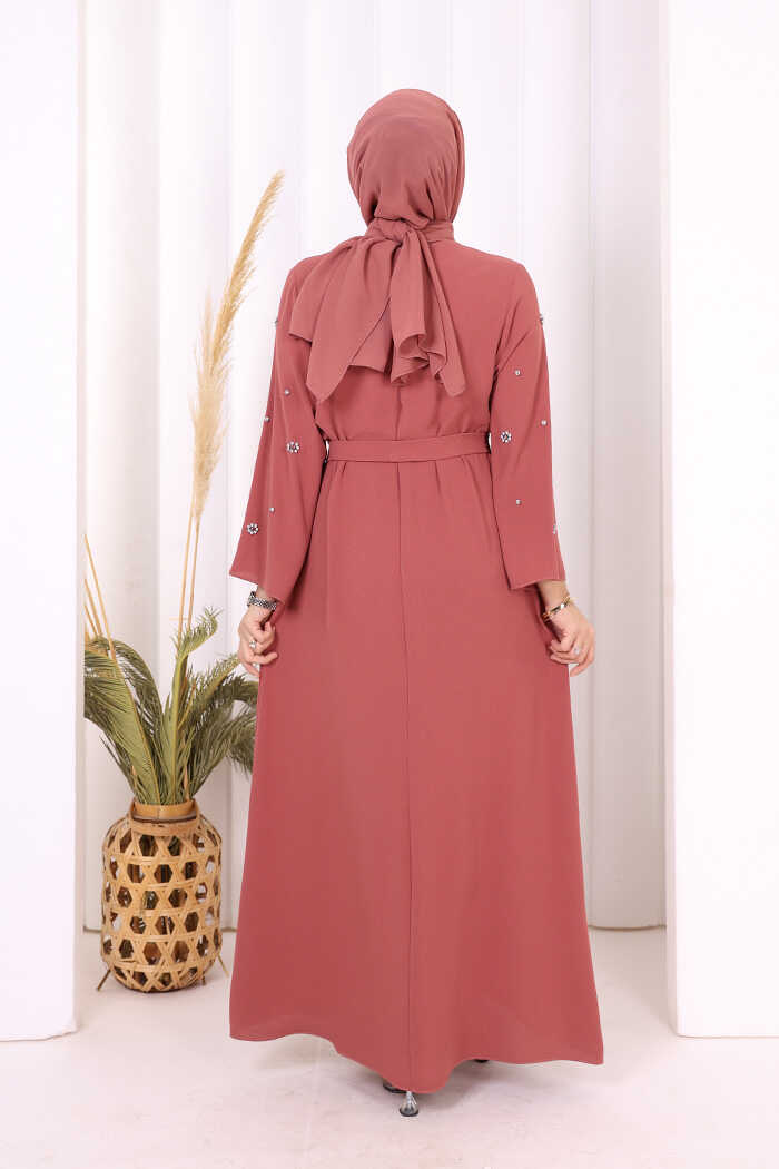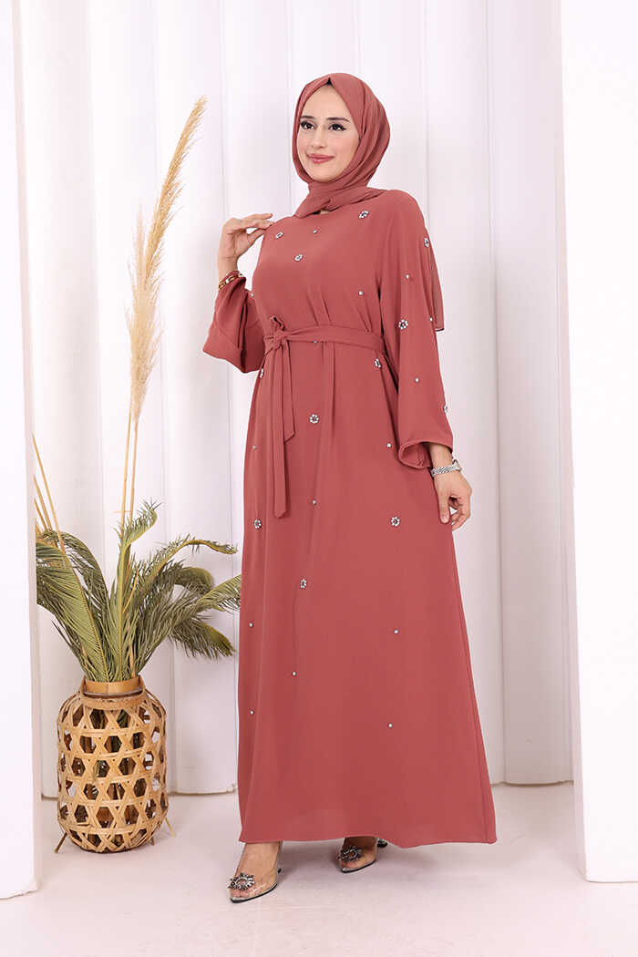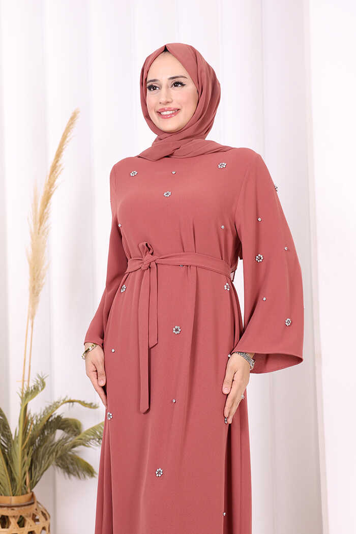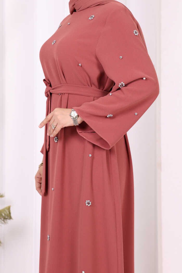 TAŞ DETAYLI BEL KUŞAKLI ELBİSE