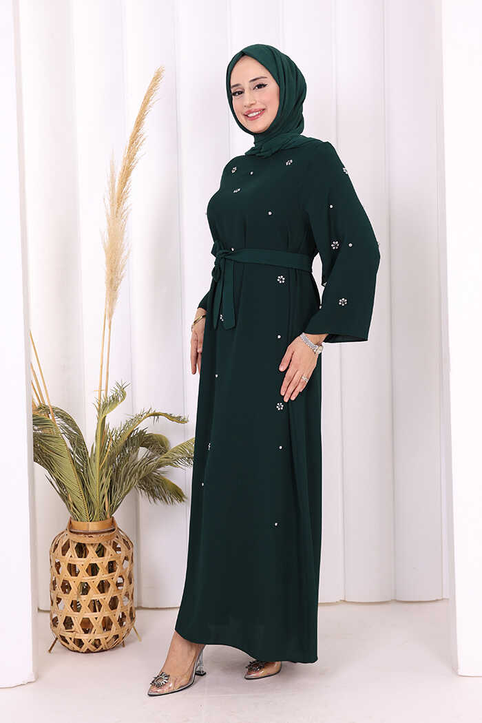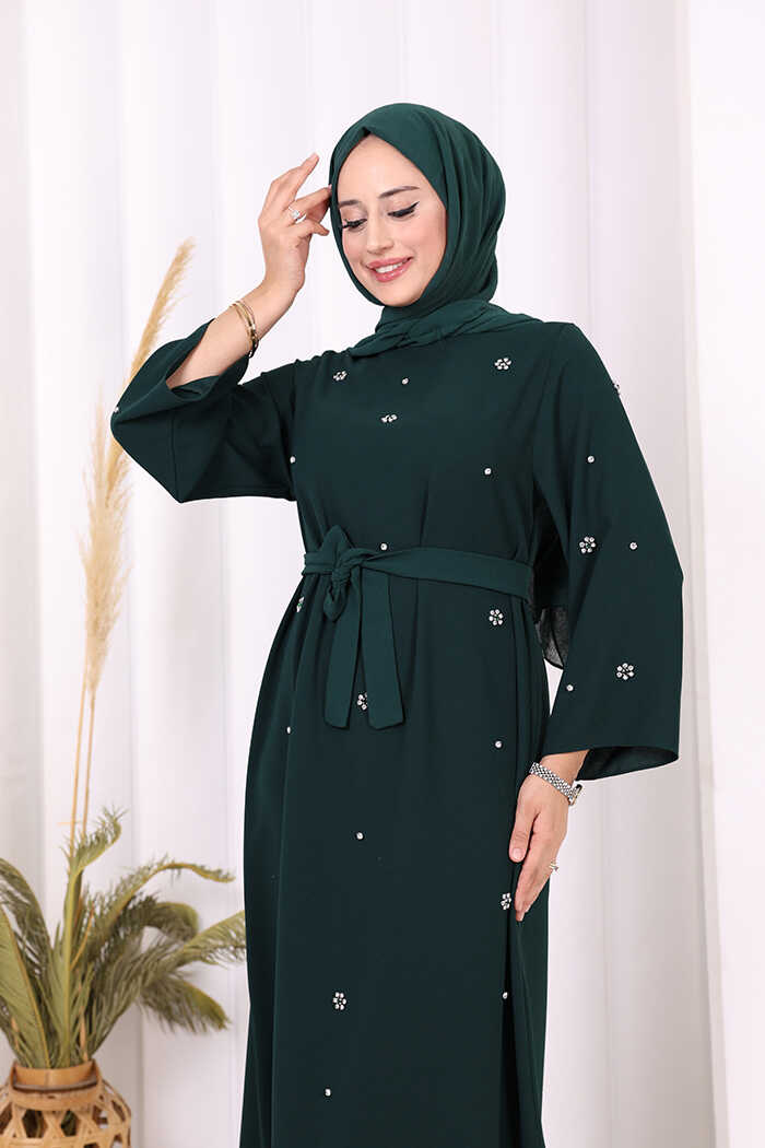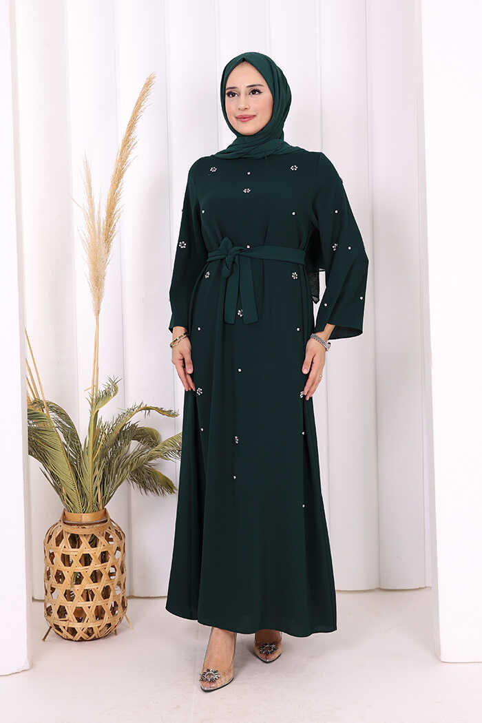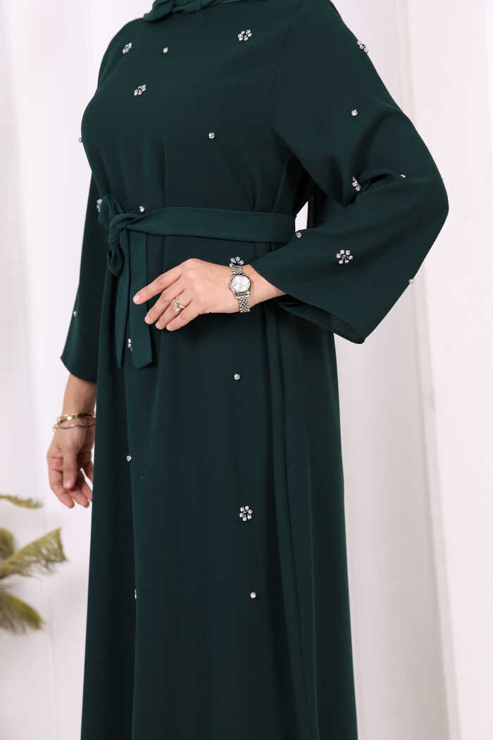 TAŞ DETAYLI BEL KUŞAKLI ELBİSE