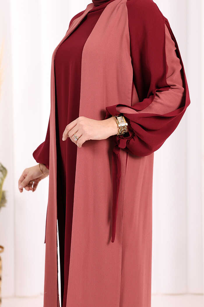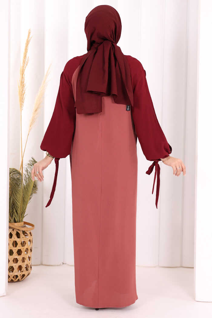 فستان من قطعتين بلونين ومظهر بالون 3799 وردي جاف