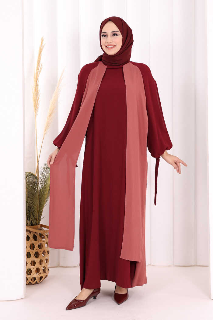 Das Kleid hat einen Reißverschluss auf der Rückseite. Die Armmanschetten sind mit Schnürdetails versehen. Auf der Vorderseite ist ein Stück an das farbige Chiffonprodukt angenäht. Halber Hals. Kreppstoff. Größe 38 40 42 44 46 48. Größe 38: Schulter-Arm 72 cm, Bizeps 44 cm, Breite 104 cm, Länge 140 cm