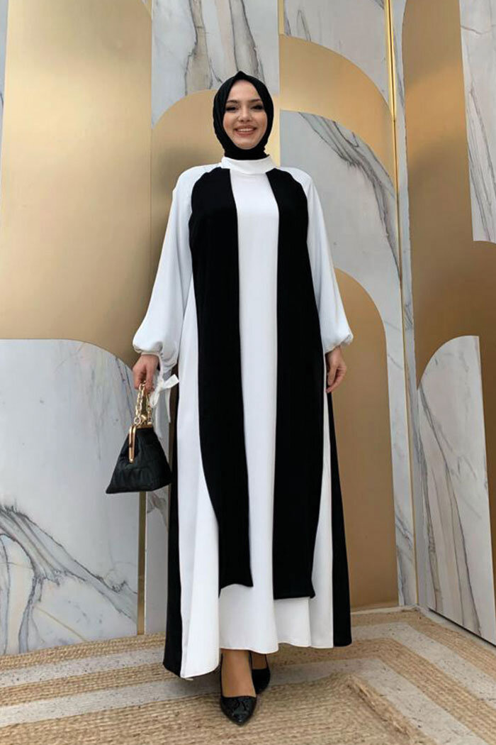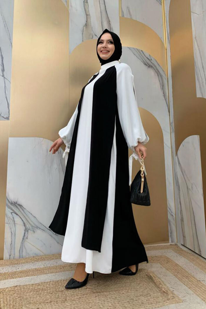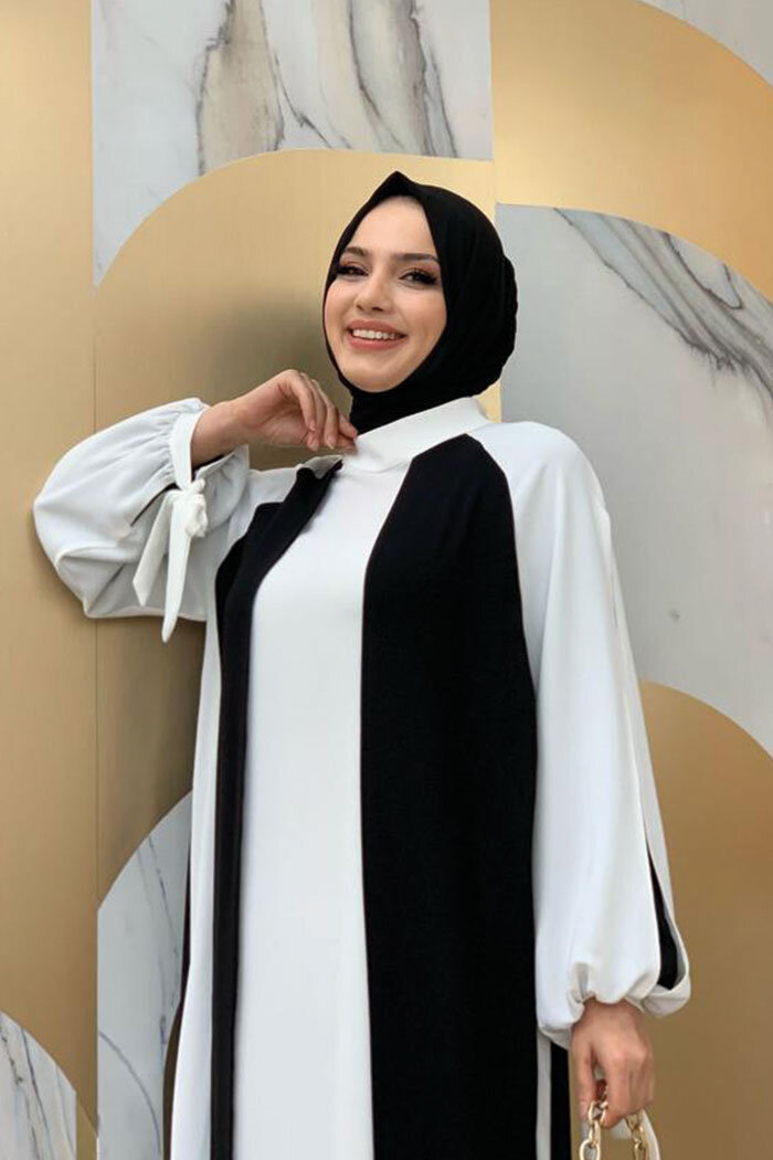 İKİ RENKLİ PARÇA DETAY ELBİSE