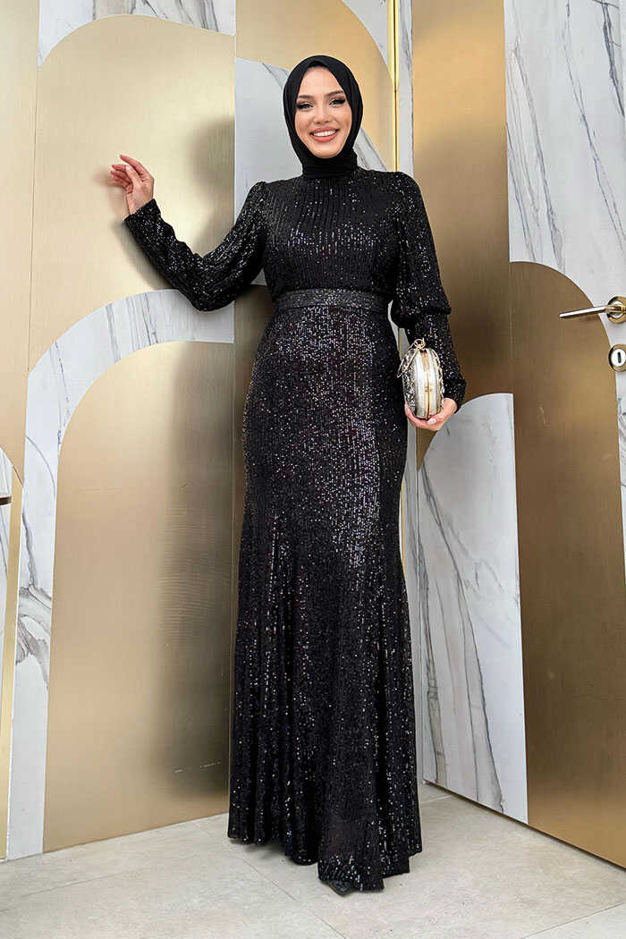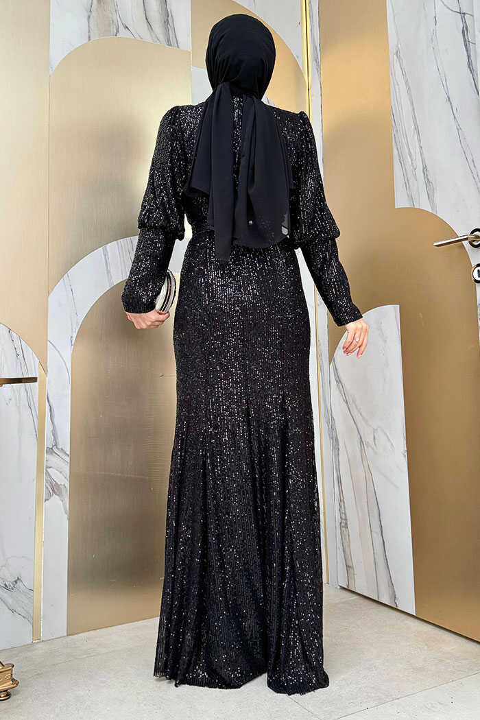 KEMER AKSESUARLI PUL PAYET BALIK ABİYE ELBİSE