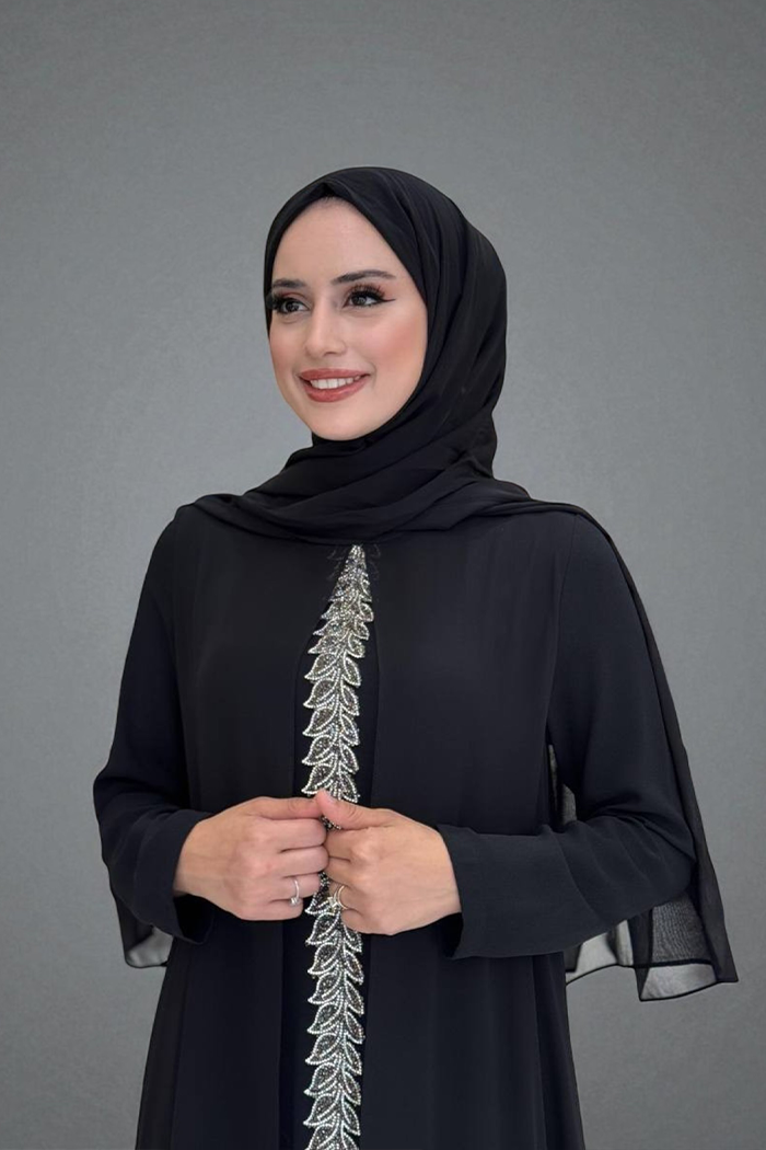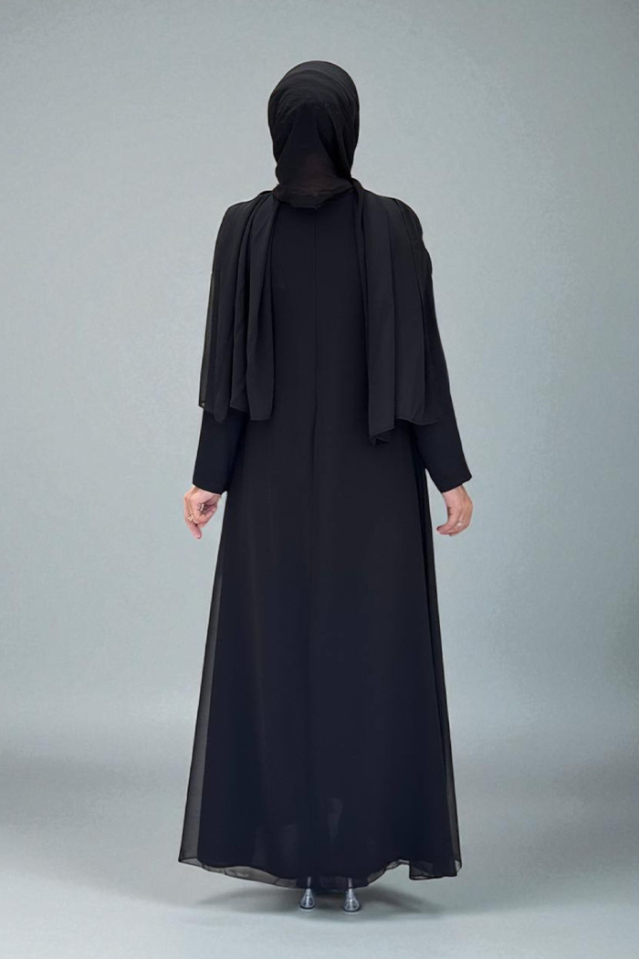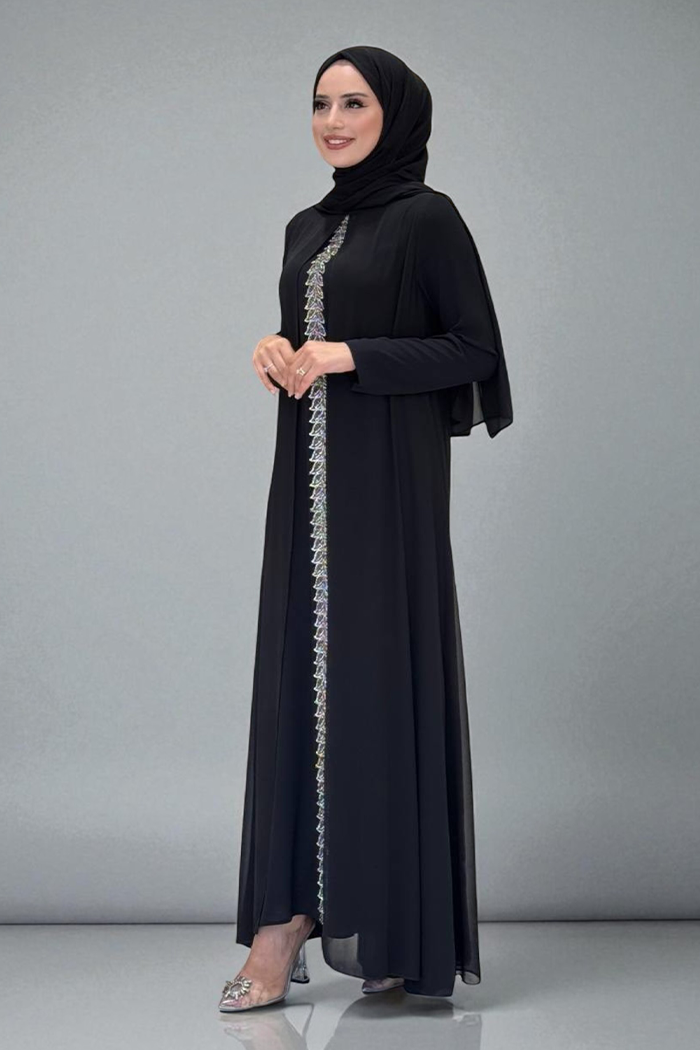 PELERİNLİ ÖN KISIM İŞLEME DETAY ŞALLI ELBİSE