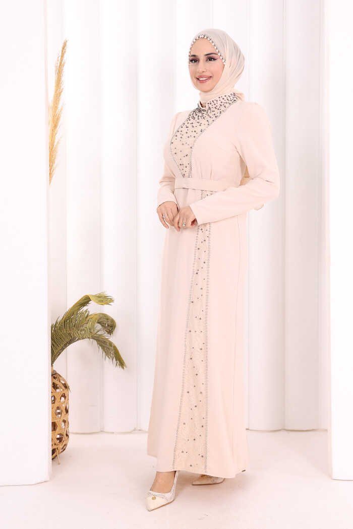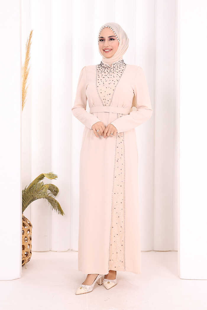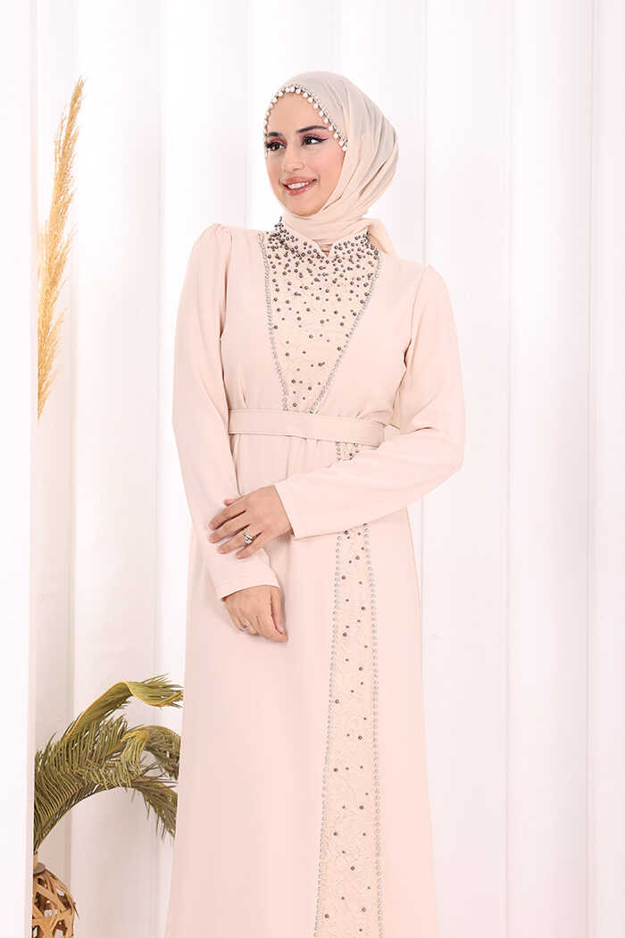 Taşlı Krep Dantel Elbise 3870 Taş