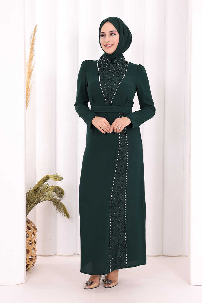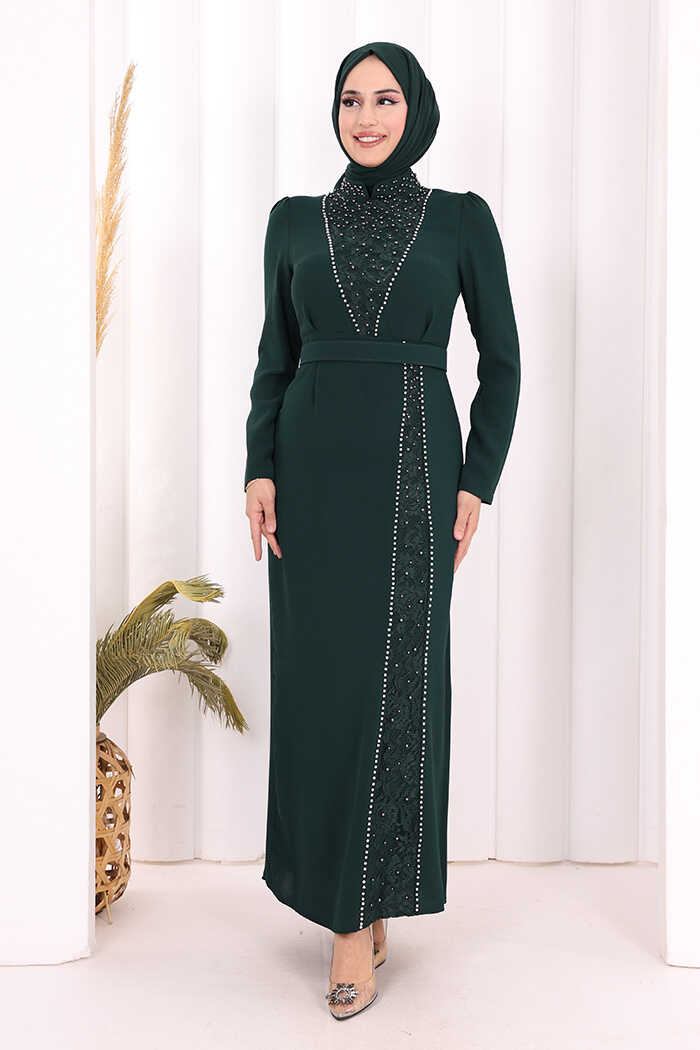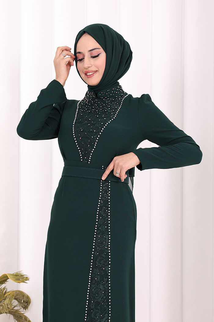 TAŞLI KREP DANTEL ELBİSE: