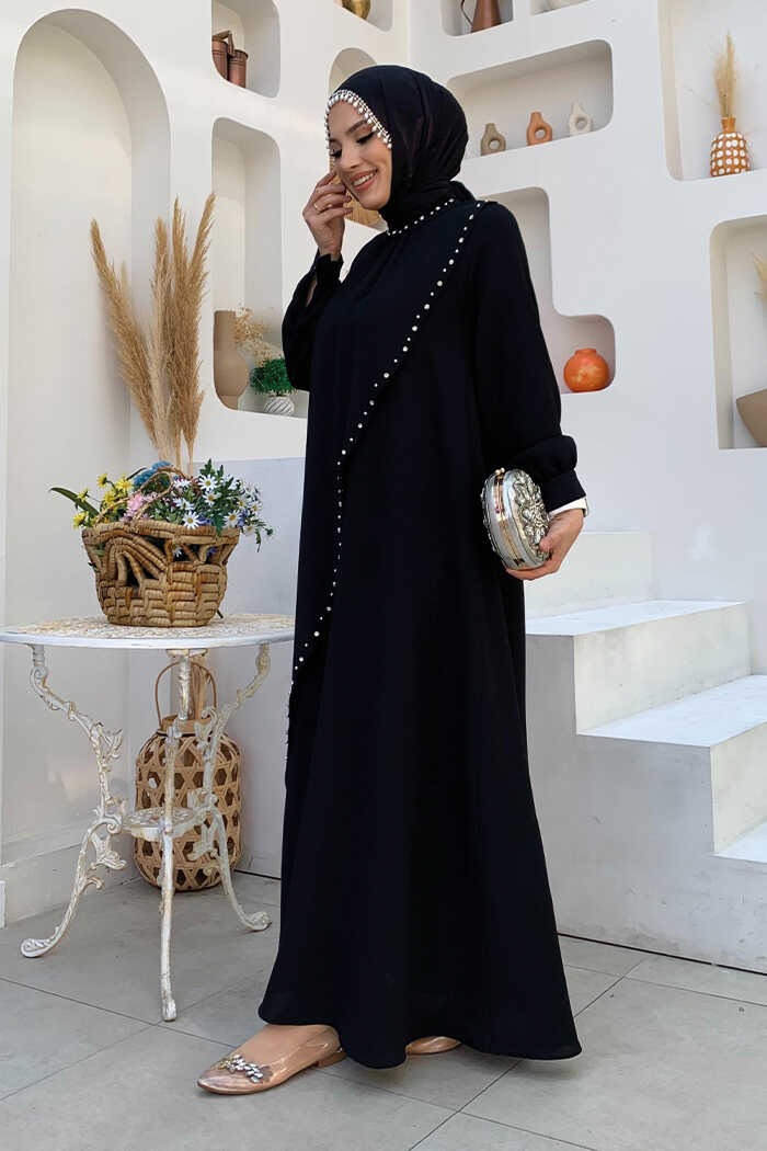 Yaka ve ön kısım inci taş detaylıdır.
