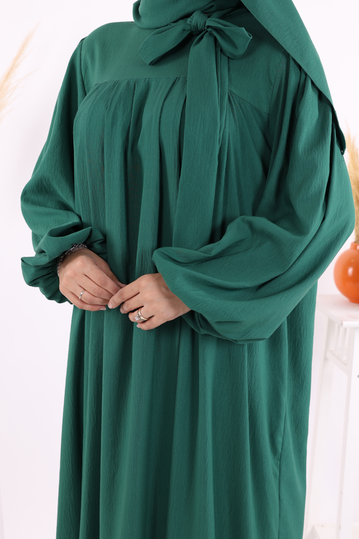 YAKASI BAĞLAMA DETAYLI ŞALLI ELBİSE: