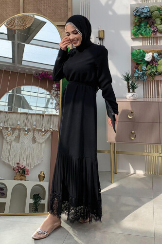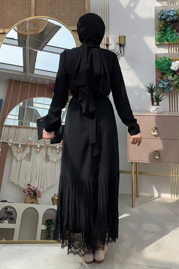 ETEK UCU PİLİSELİ DANTEL GÖRÜNÜMLÜ ELBİSE: