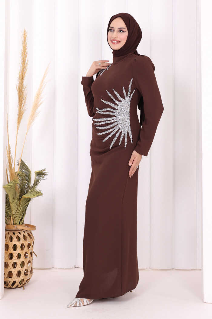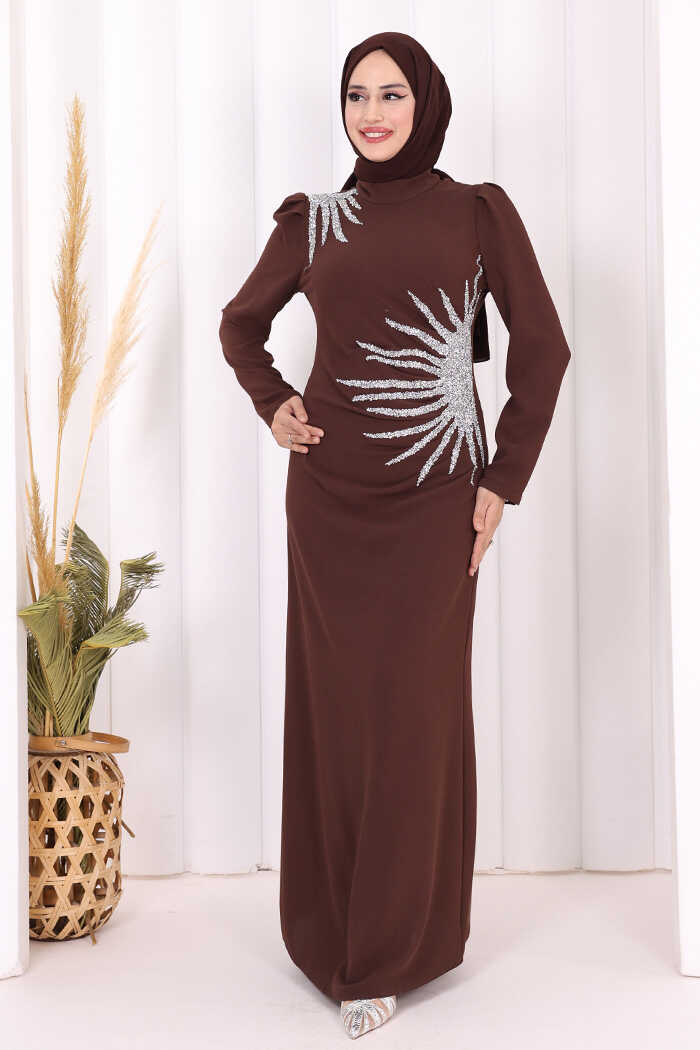 OMUZ VE BEL KISMI TAŞ DETAYLI ABİYE ELBİSE: