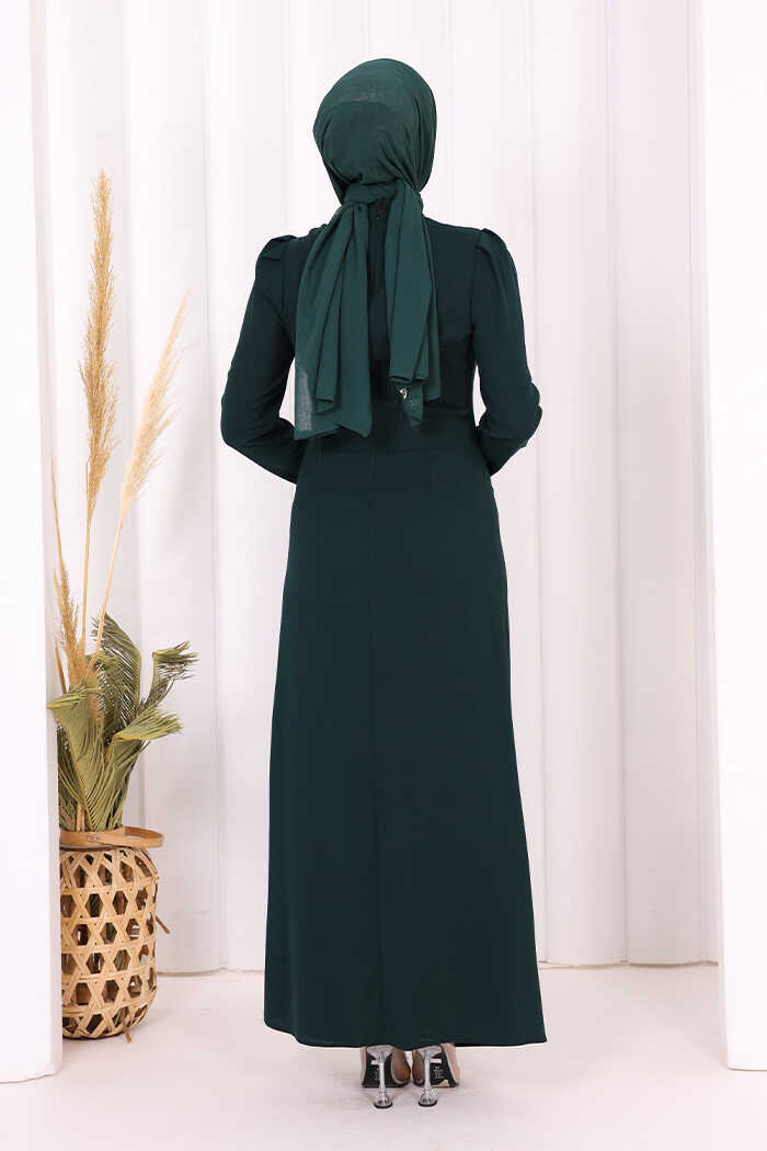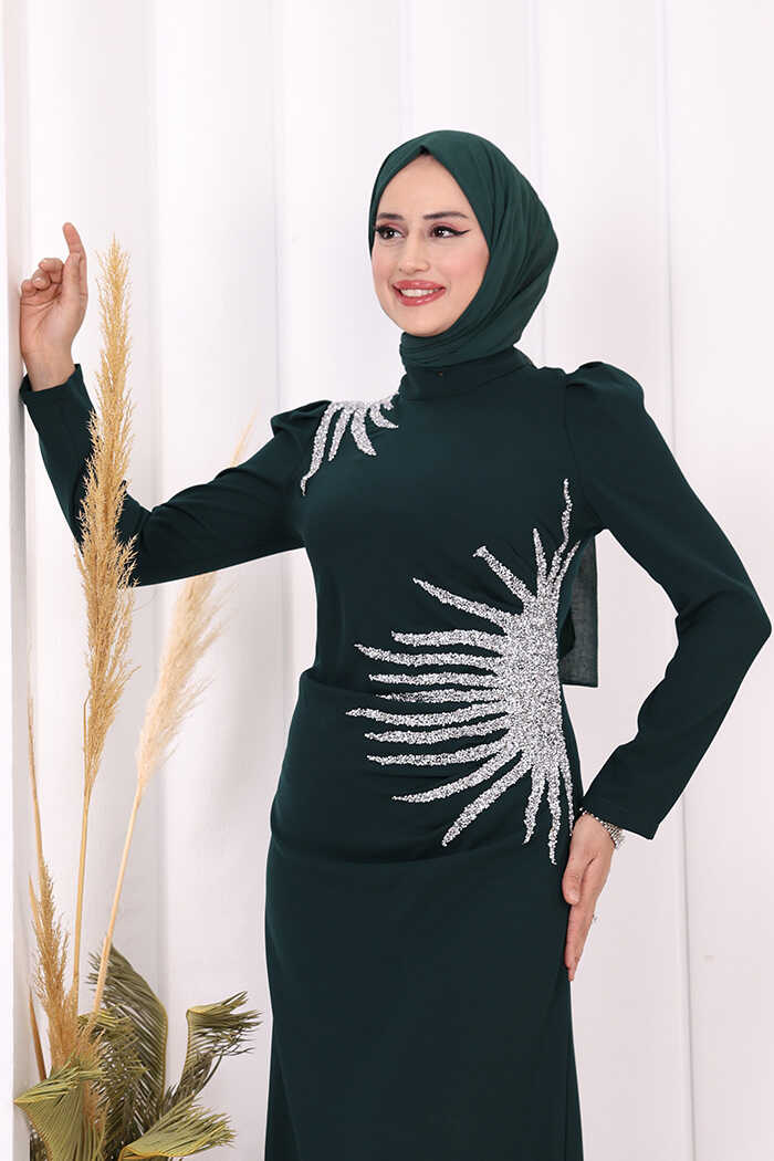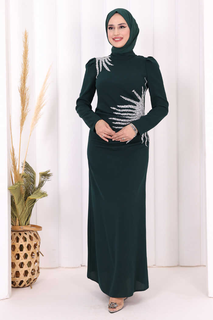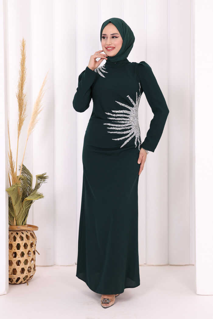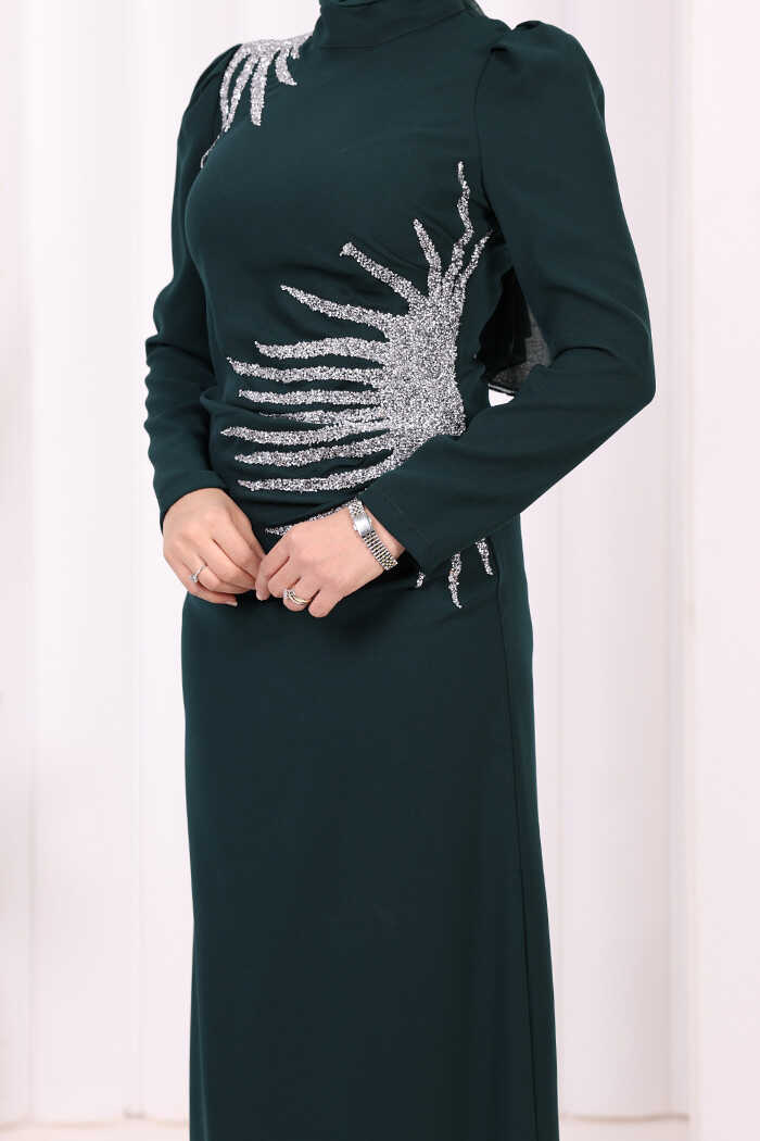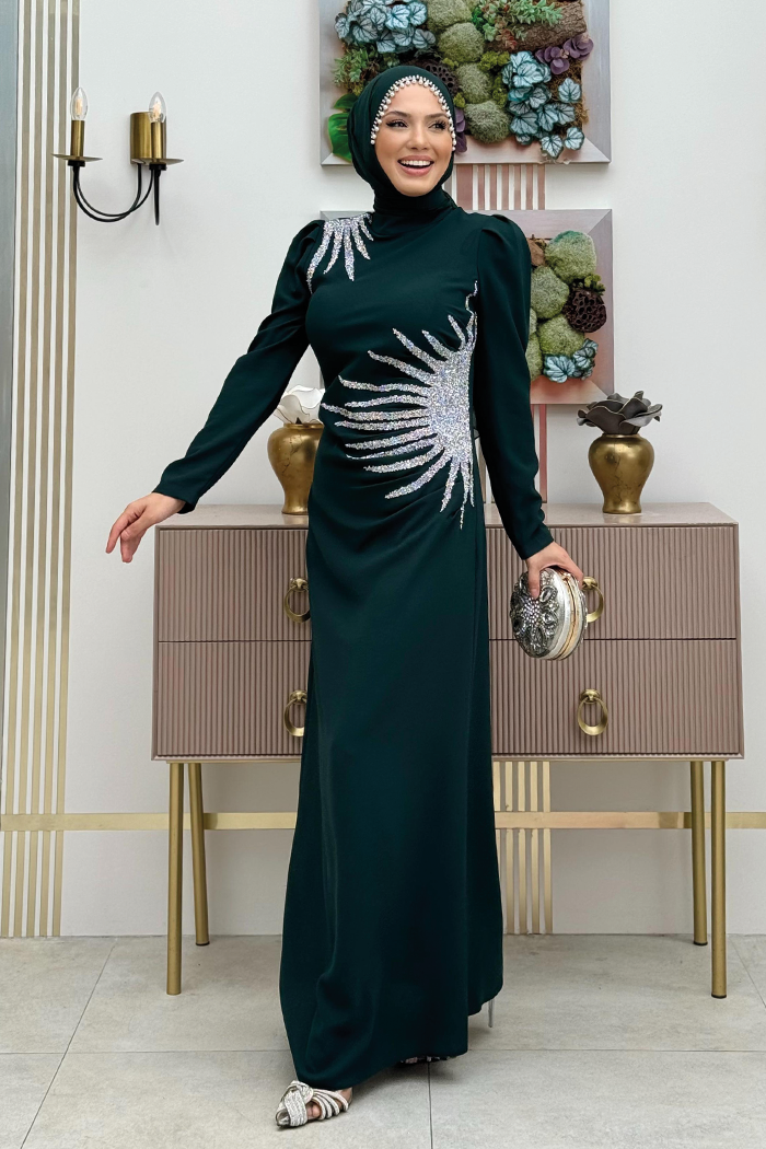 OMUZ VE BEL KISMI TAŞ DETAYLI ABİYE ELBİSE: