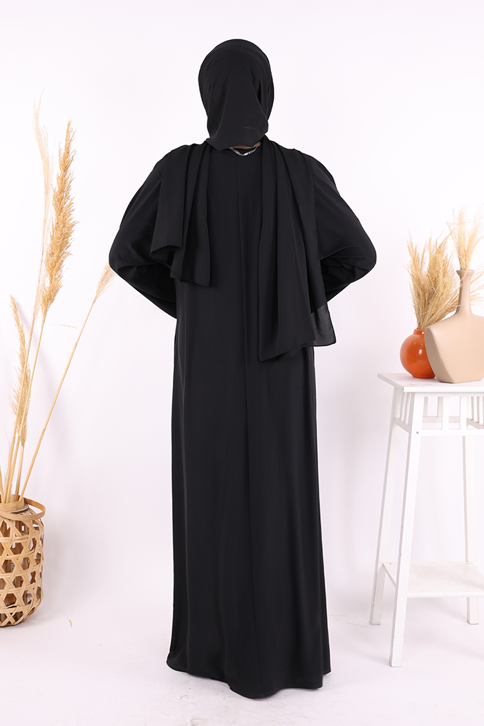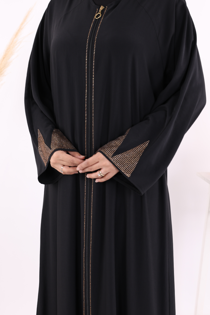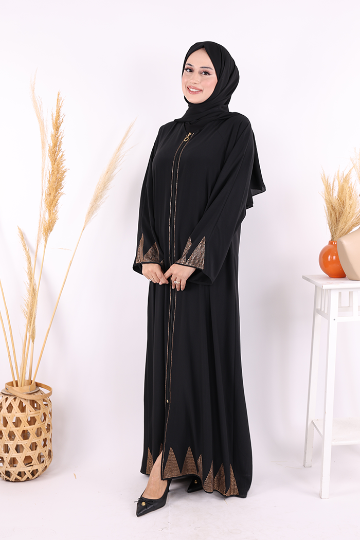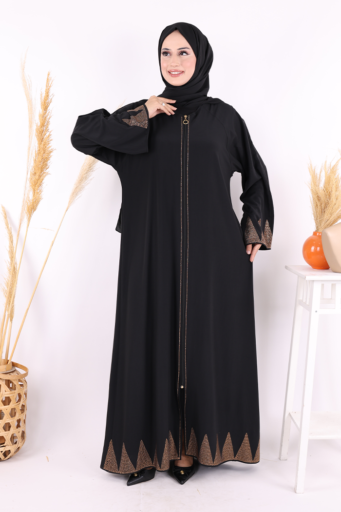 Taş Detaylı Fermuarlı Ferace 3918 Siyah-Gold