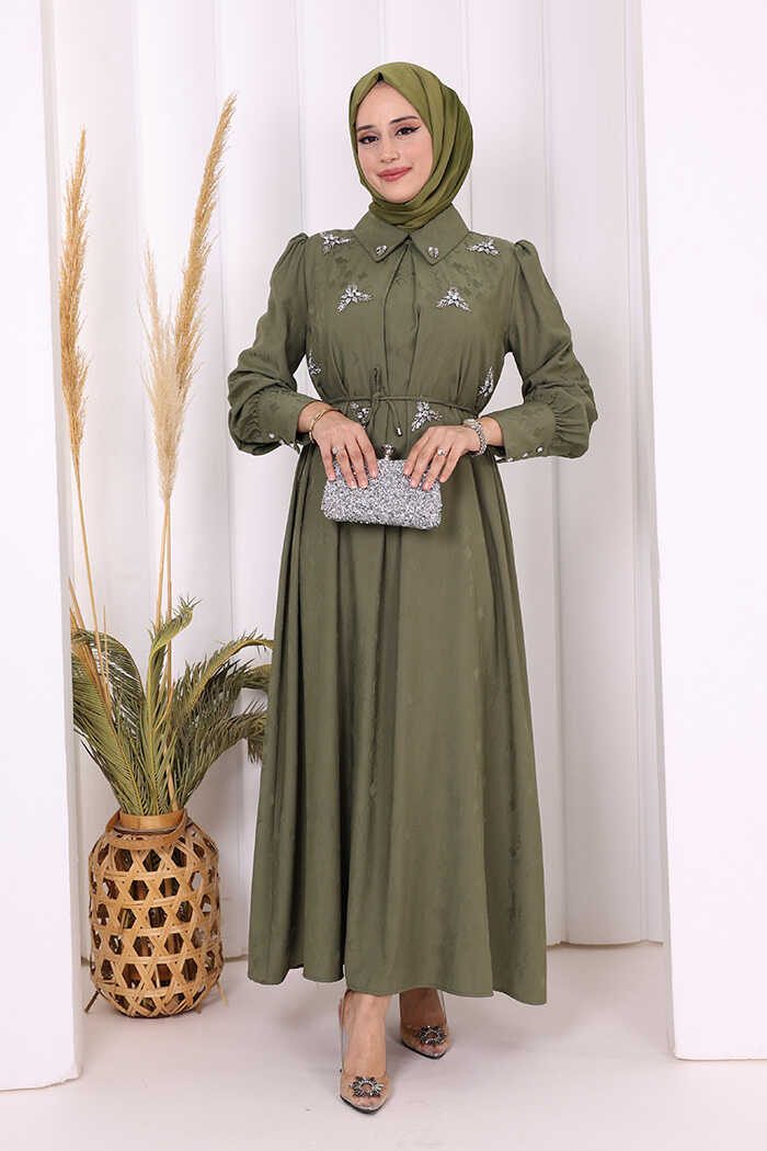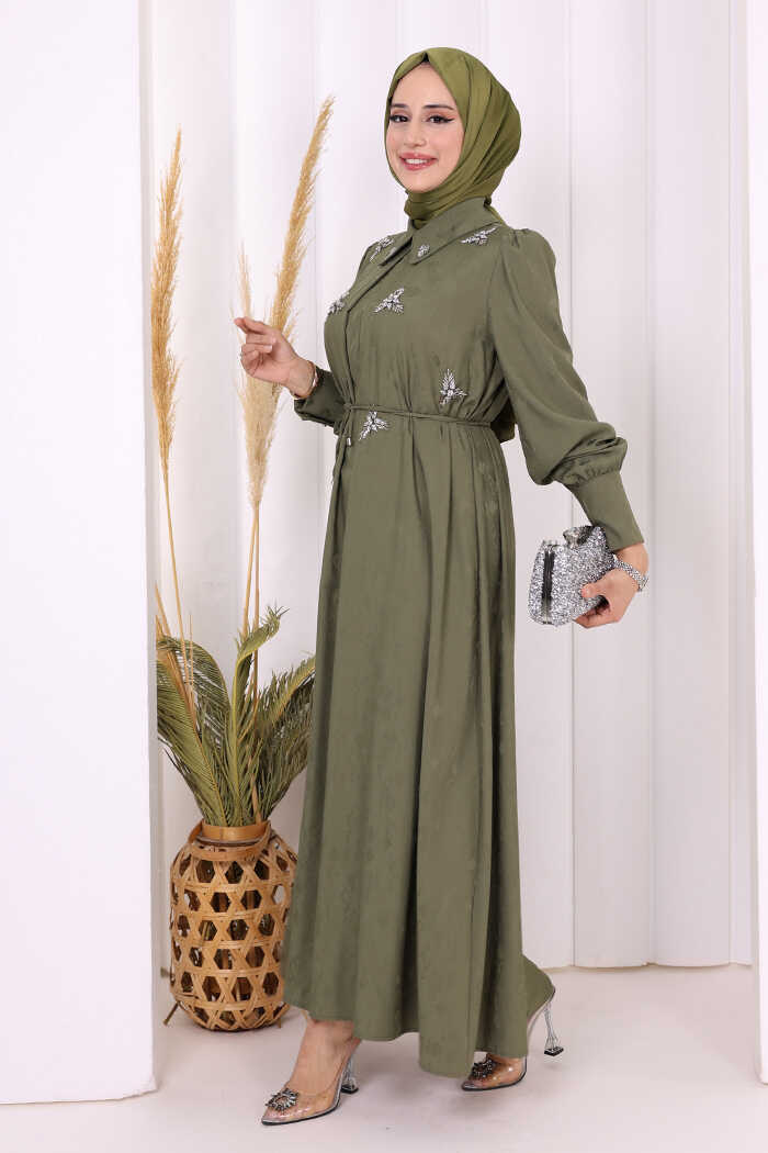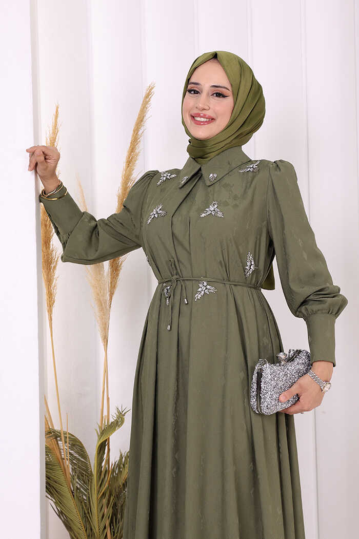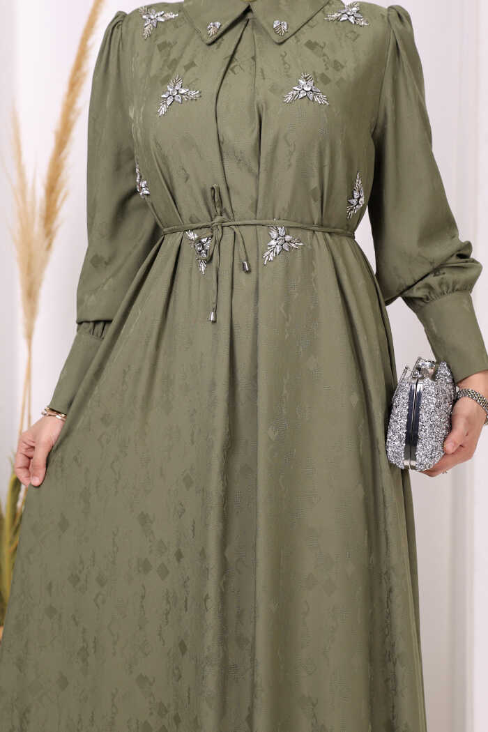 TAŞ DETAYLI JAKAR ELBİSE: