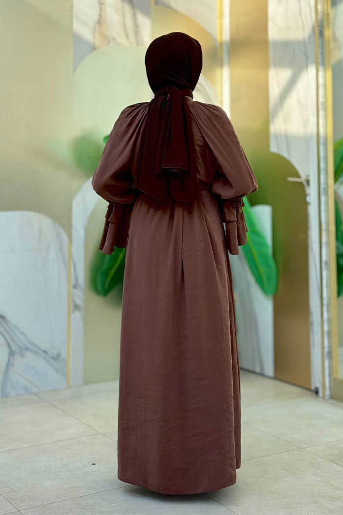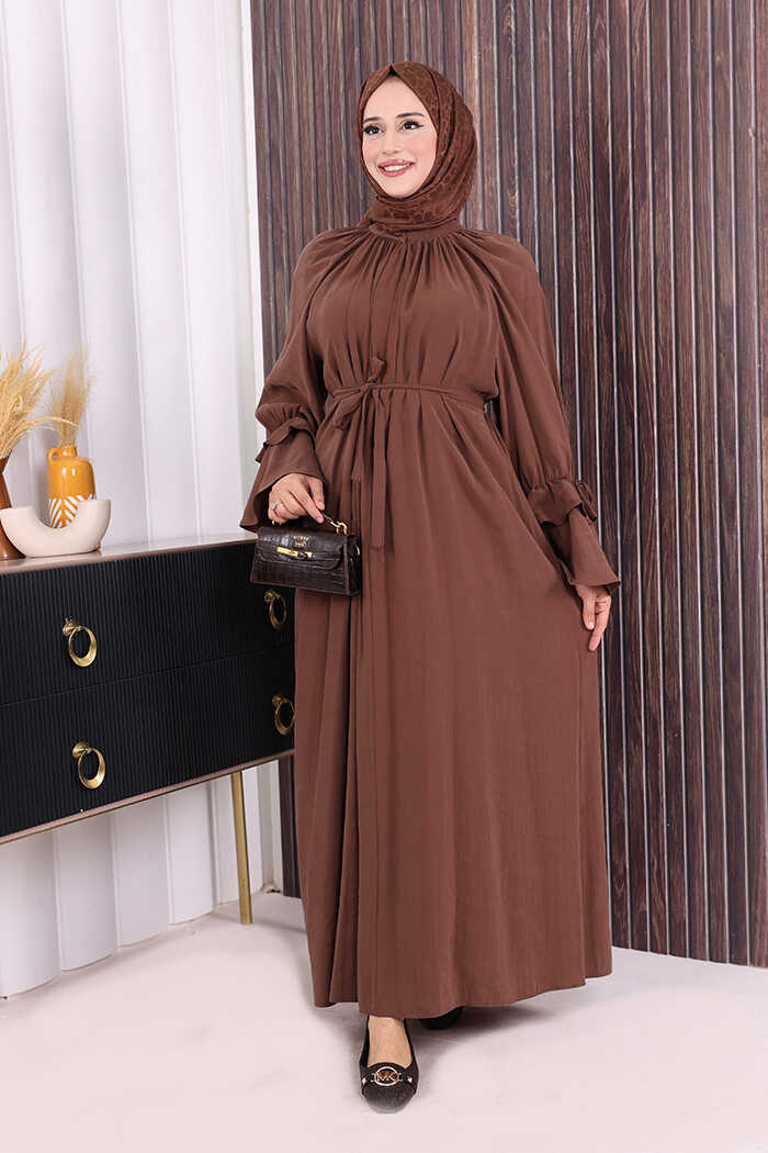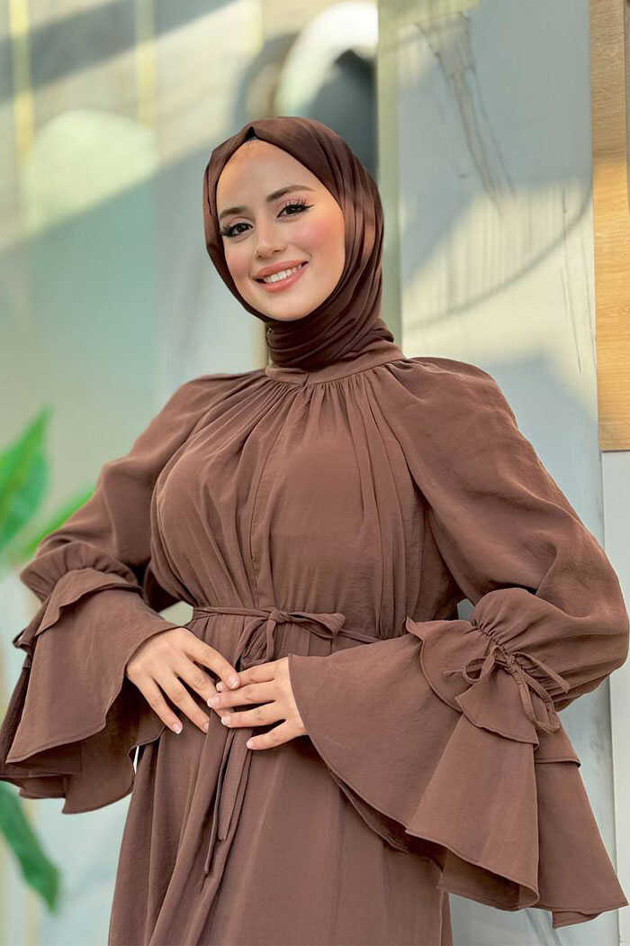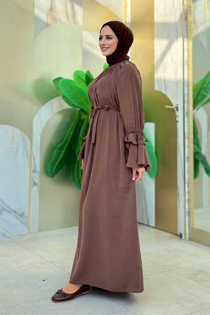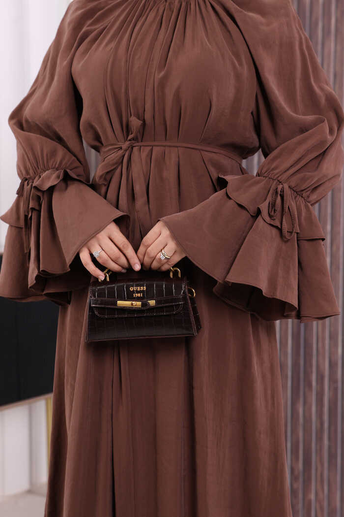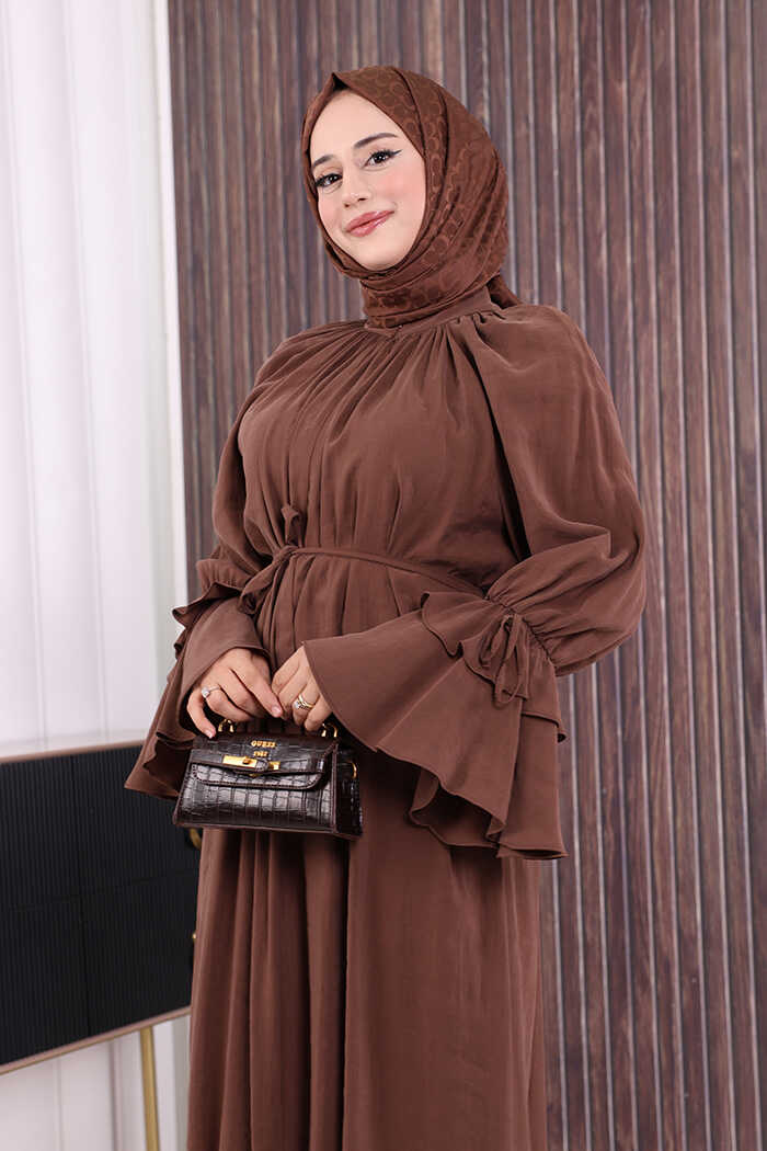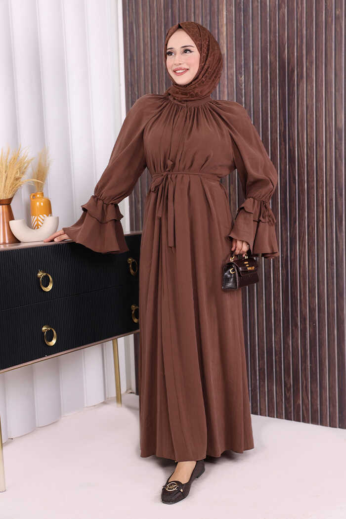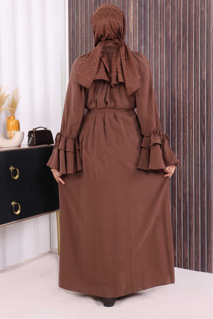 Kol Fırfır Detaylı Elbise 3925 Kahverengi