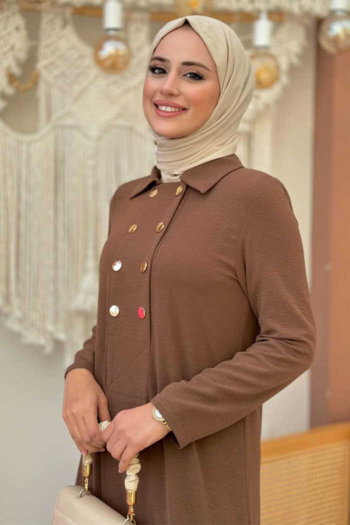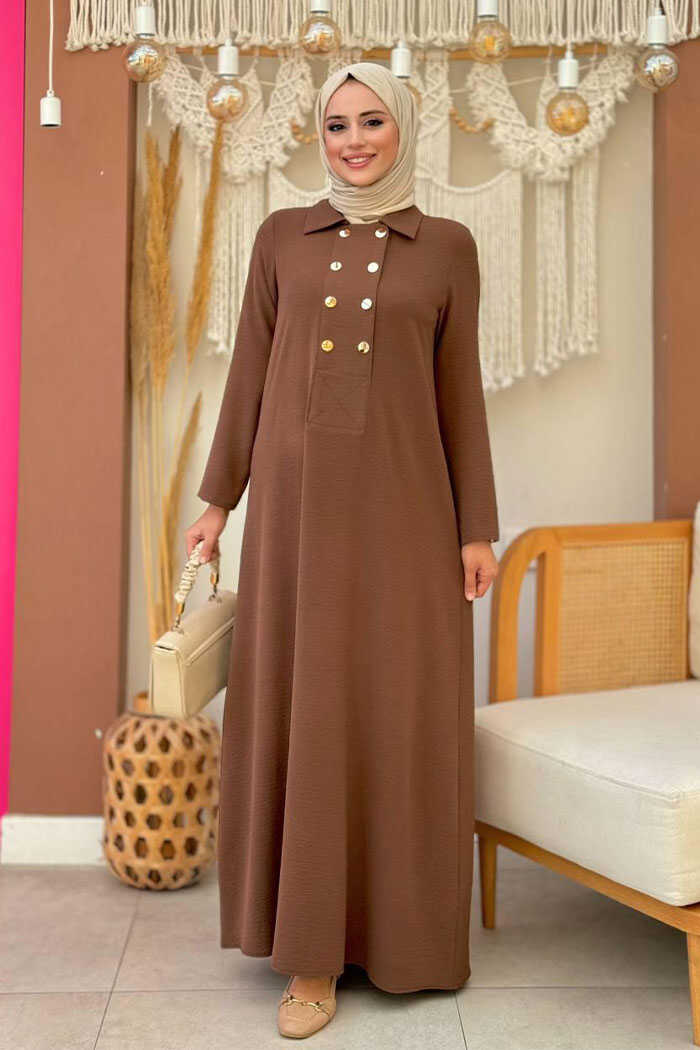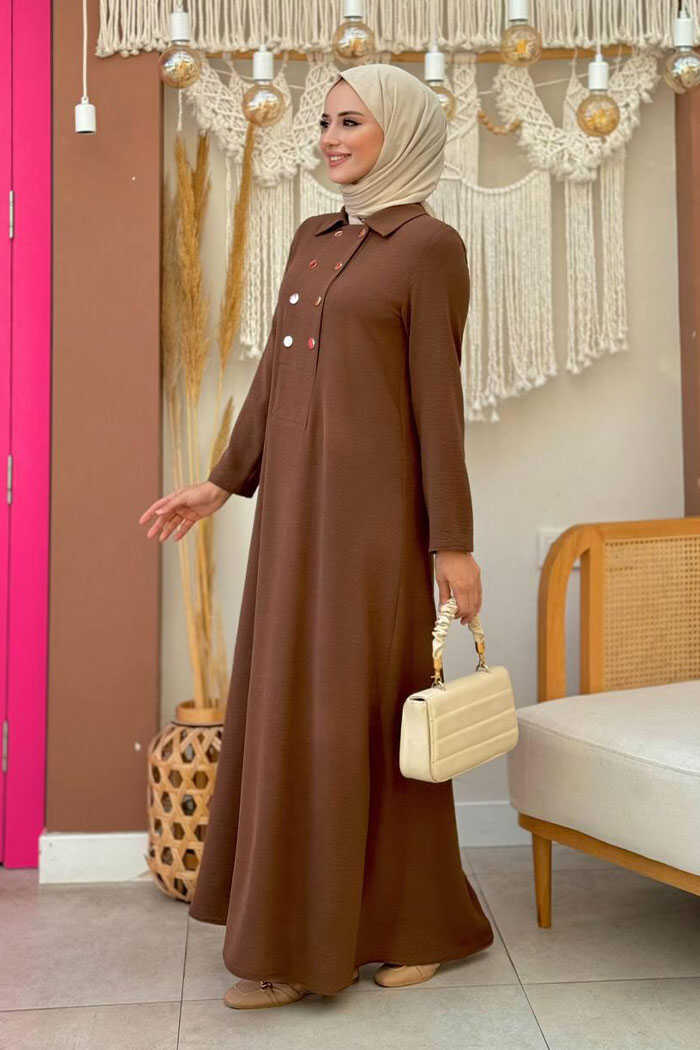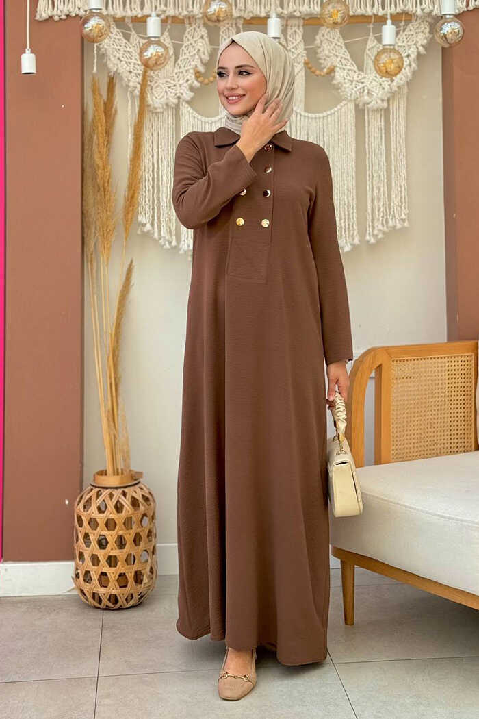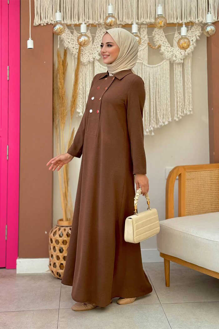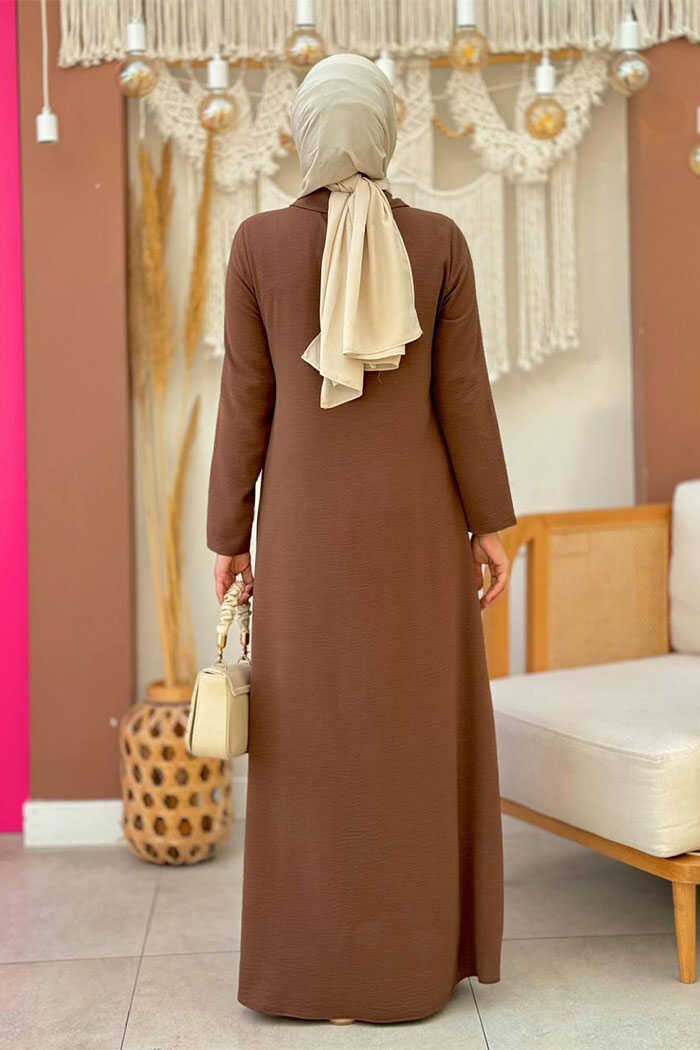 Çıt Çıt Düğme Detaylı Elbise 3928 Kahverengi