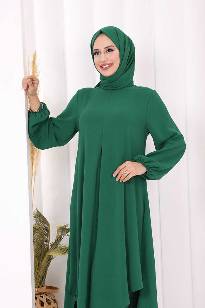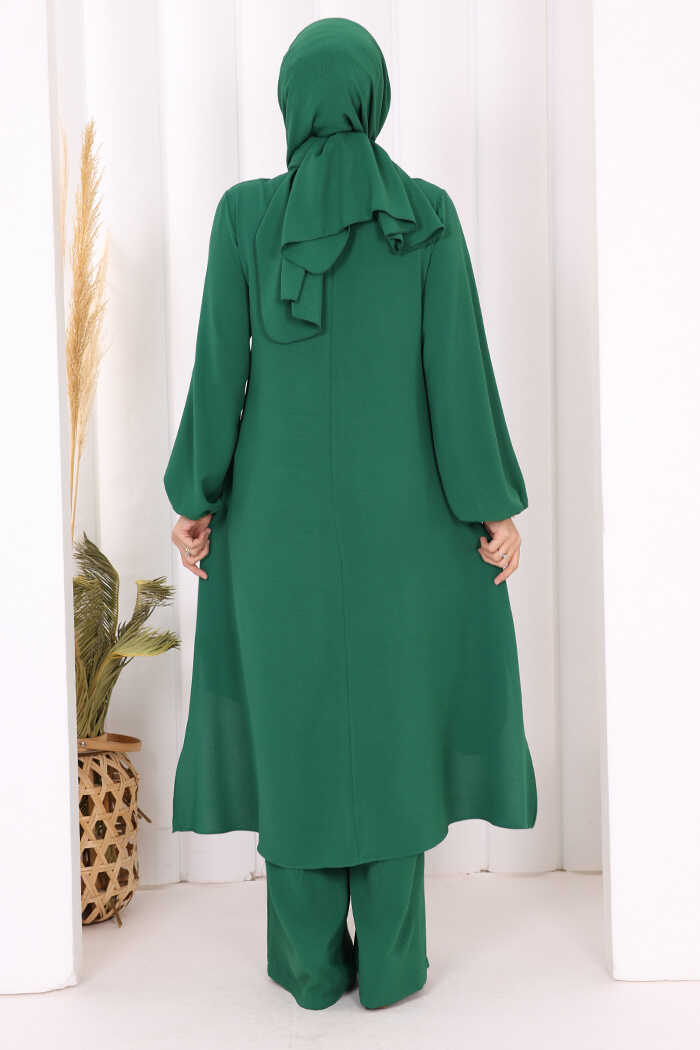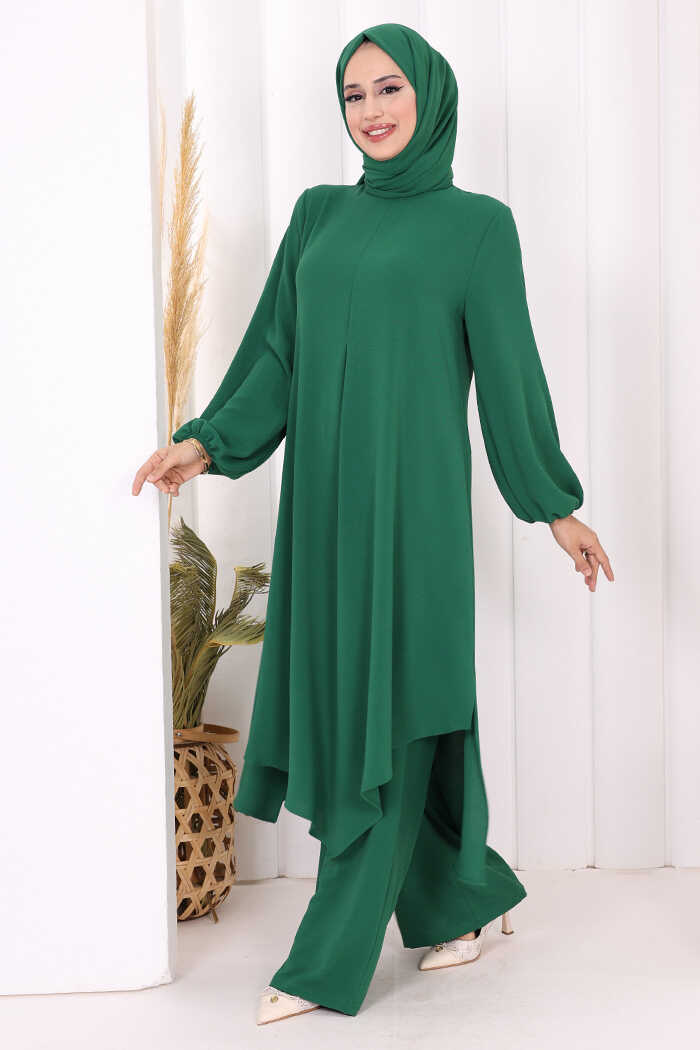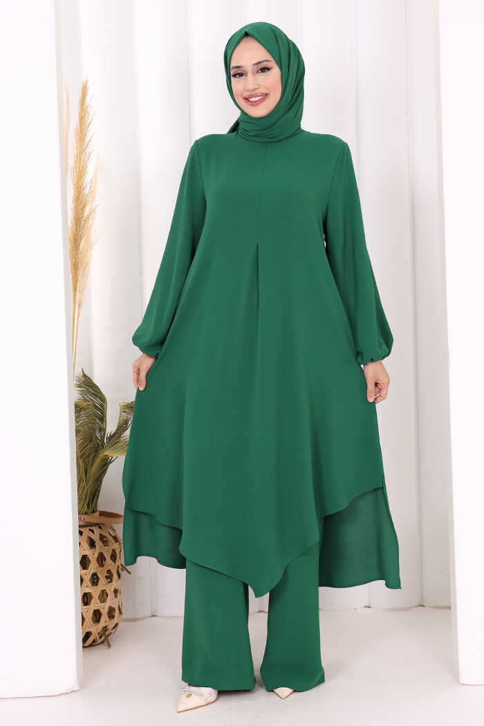 Verevli Tunik, Pantolon Takım Şal HEDİYE 3937 Zümrüt