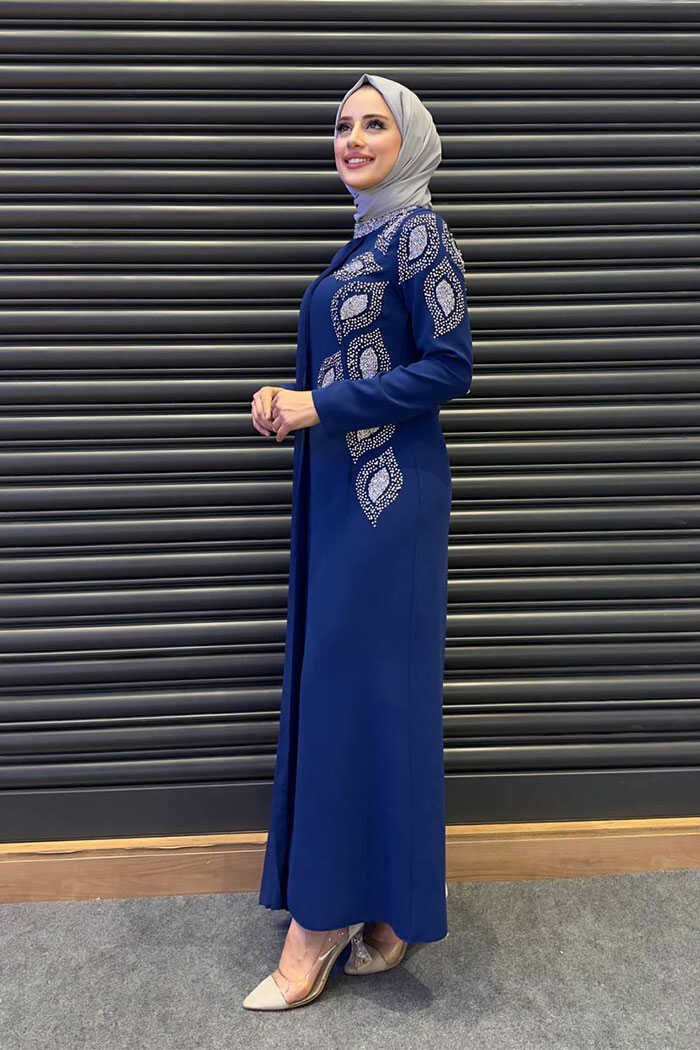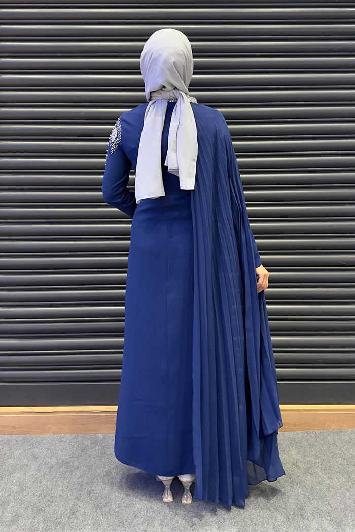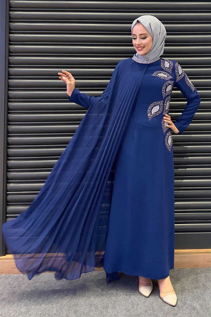 Taş Detaylı Pelerinli Elbise 3938 Lacivert
