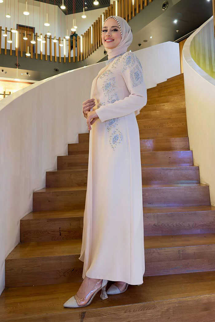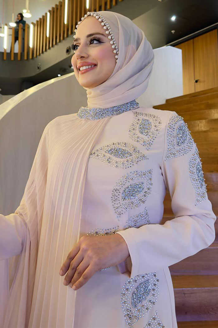 TAŞ DETAYLI PELERİNLİ ELBİSE: