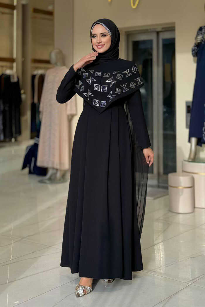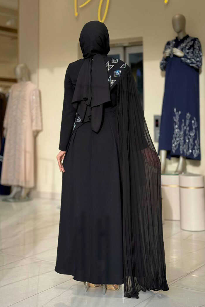 Pelerin krep üstüne taş detaylı pilise şifon detaylıdır.