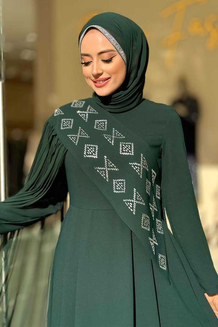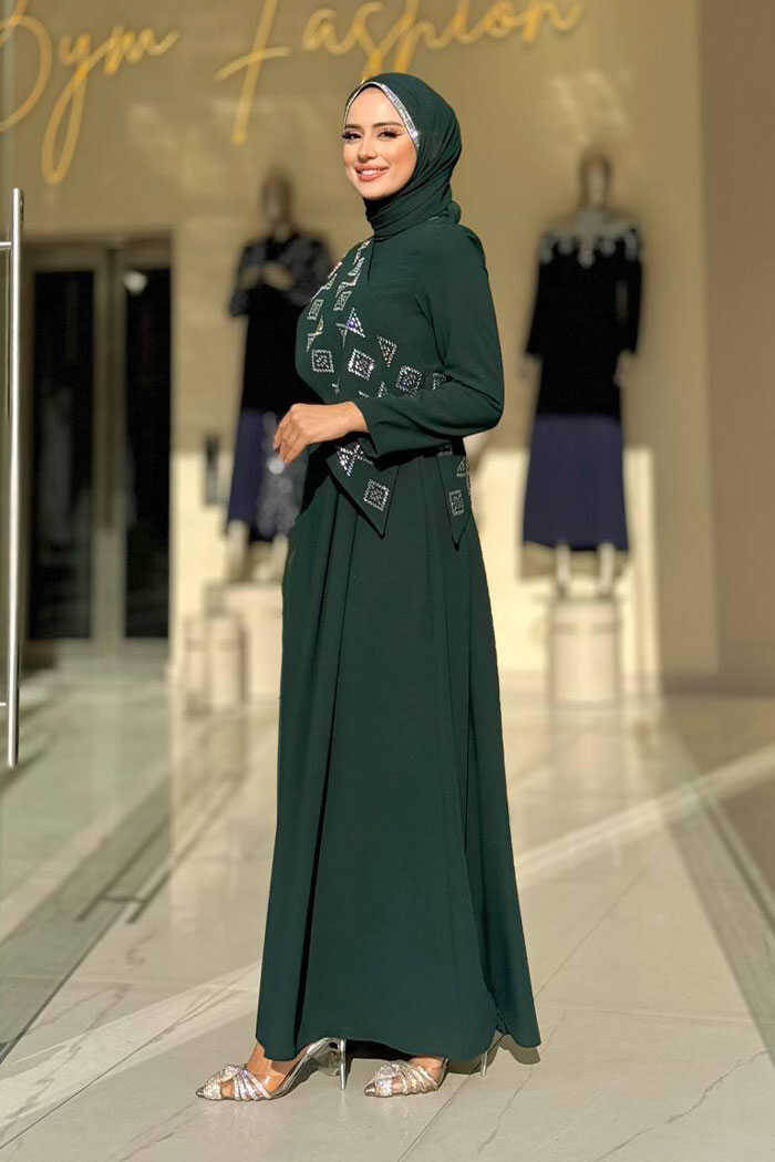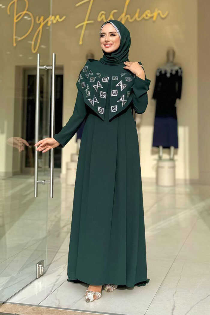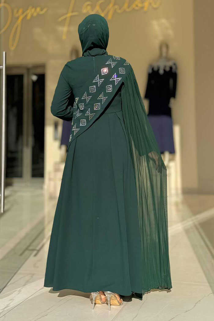 Pelerin Detaylı Elbise 3940 Zümrüt