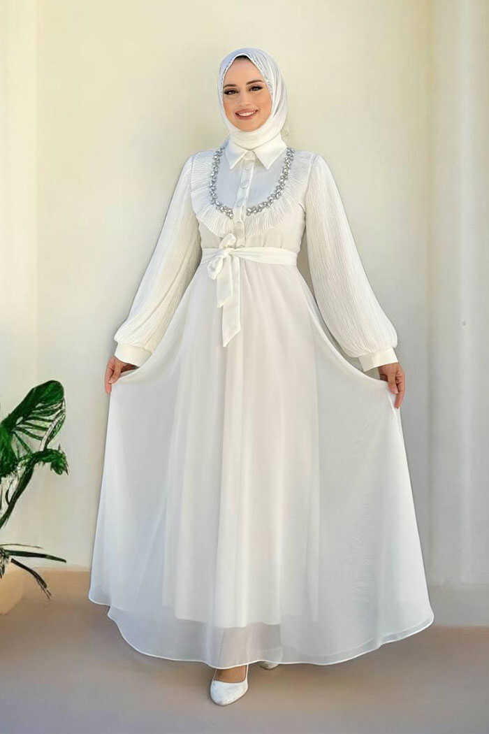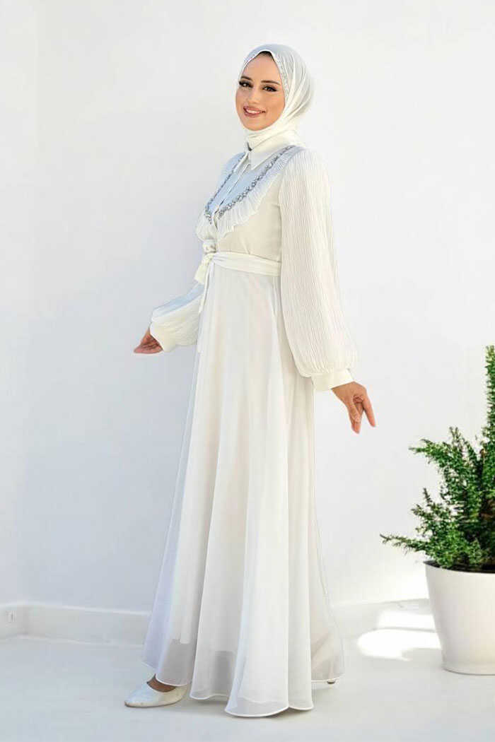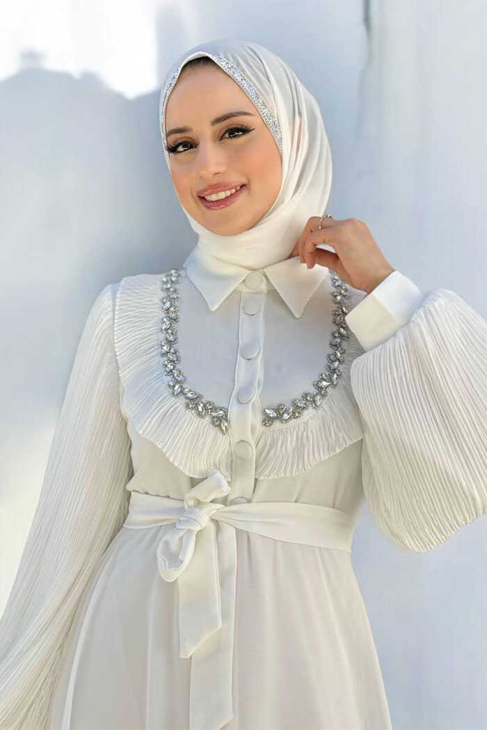 Pilise Kol Detaylı Elbise 3949 Ekru