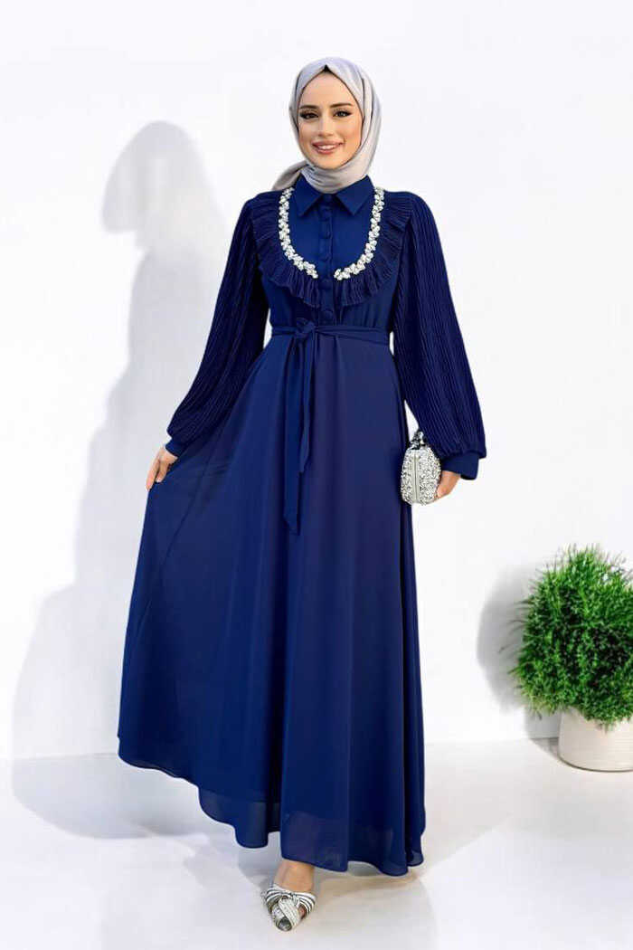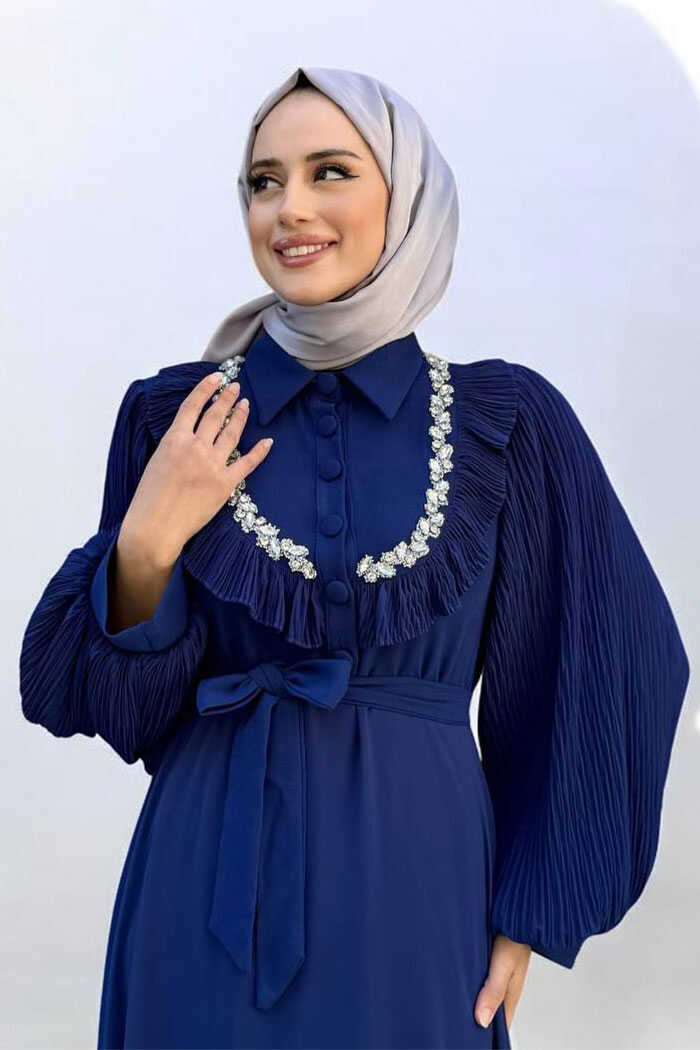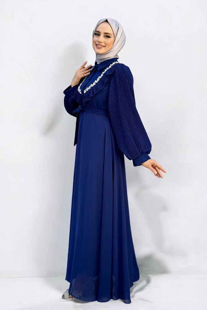 Pilise Kol Detaylı Elbise 3949 Lacivert