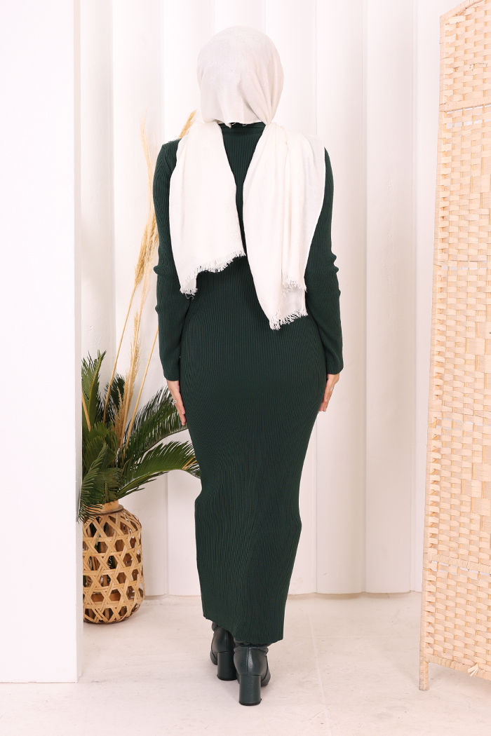 Balıkçı Yaka Fitilli Triko Elbise 4100 Zümrüt