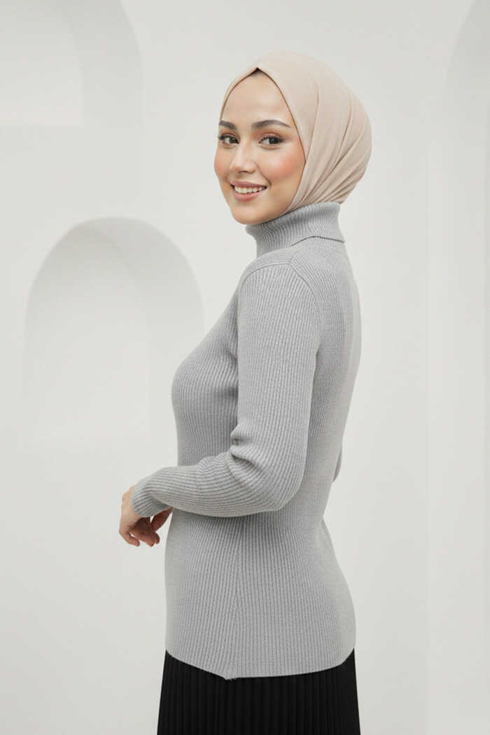 Balıkçı Yaka Düz Model Triko Kazak 4138 Gri