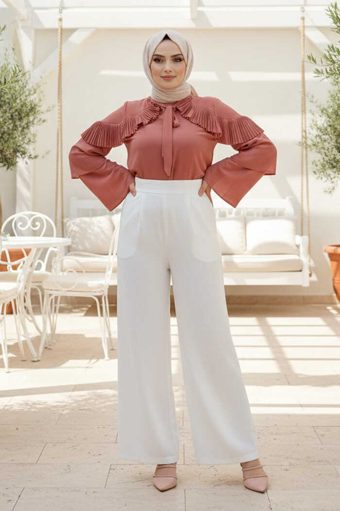 BLUSE MIT DETAIL IN RÜSCHENOPTIK UND KRAGEN Der Schulterteil der Bluse ist plissiert. Es hat einen Reißverschluss auf der Rückseite. An den Armen befinden sich Bodendetails. Am Kragenteil befindet sich eine Spitze. Kreppstoff. Größe 38 40 42 44 46 48. Die Größe unserer Schaufensterpuppen beträgt 38, bei einer durchschnittlichen Körpergröße von 165–170 cm und einem Gewicht von 55–60 kg.
