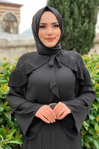 FRILL LOOK DETAIL BLOUSE WITH COLLAR